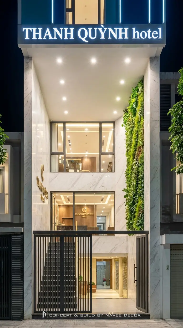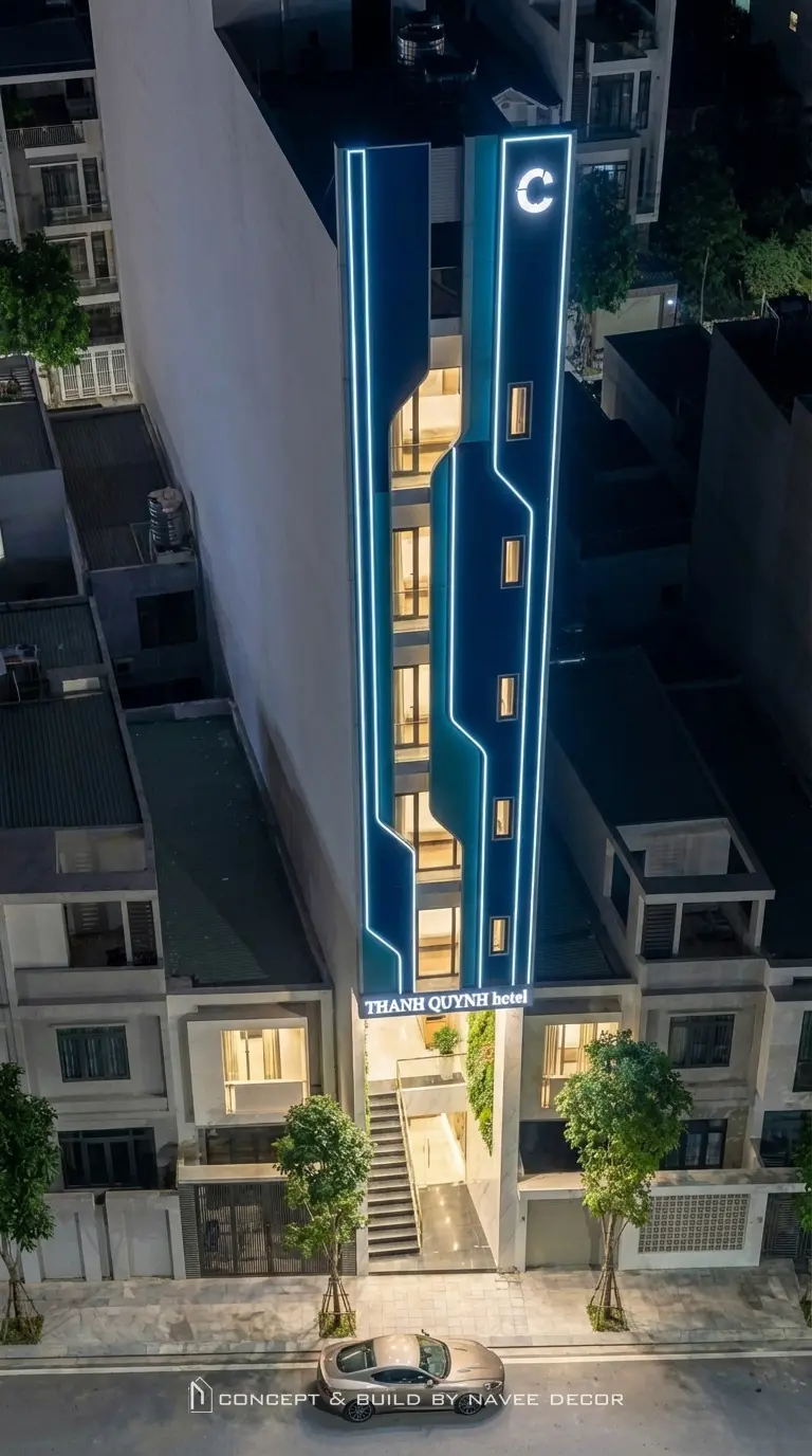 Aloha Hotel – Quy Nhơn là công trình khách sạn đô thị quy mô nhỏ, được Navee Decor thiết kế theo định hướng hiện đại – tối ưu công năng, tạo điểm nhấn nhận diện mạnh mẽ giữa bối cảnh phố hẹp.