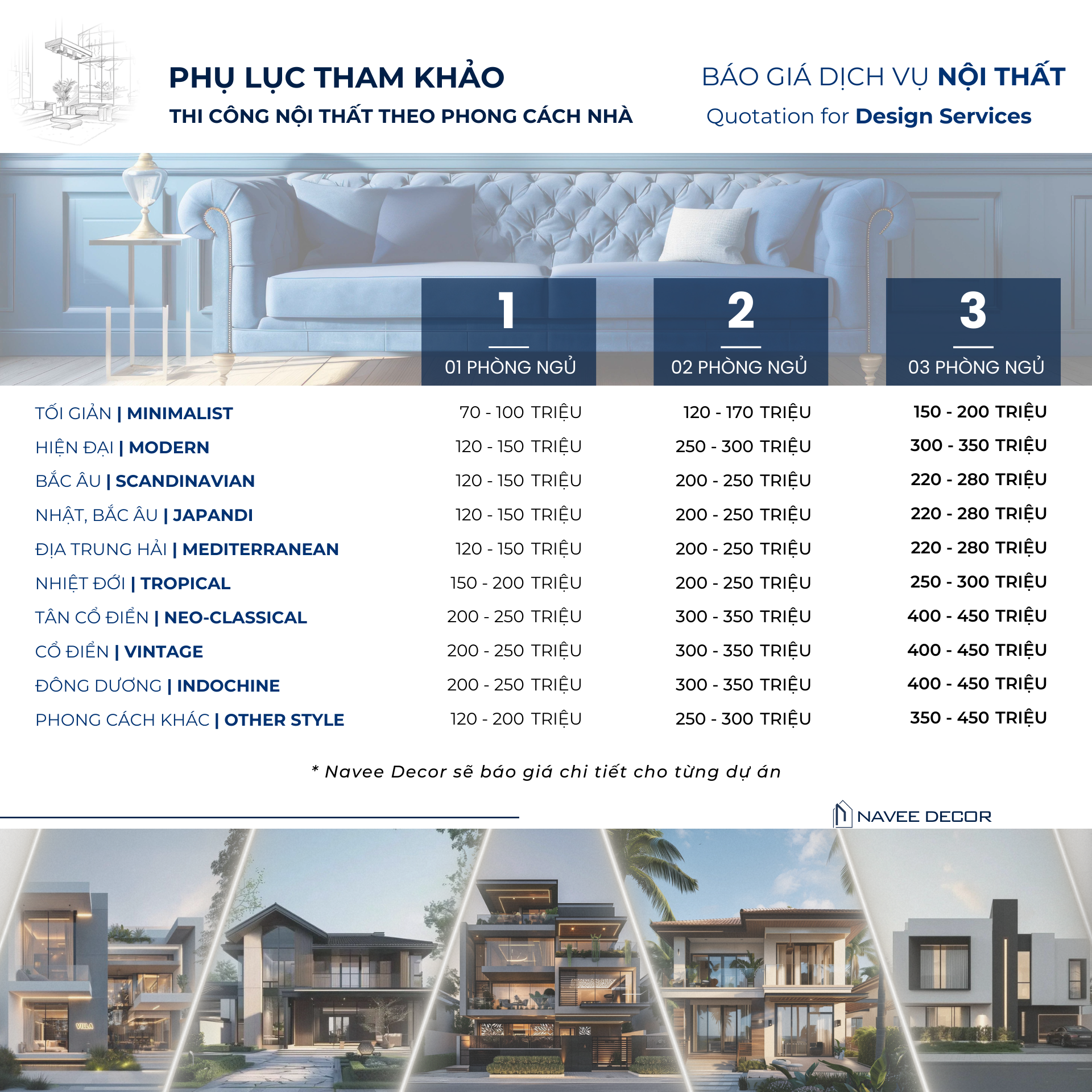 10. Phụ lục tham khảo chi phí nội thất biệt thự theo phong cách