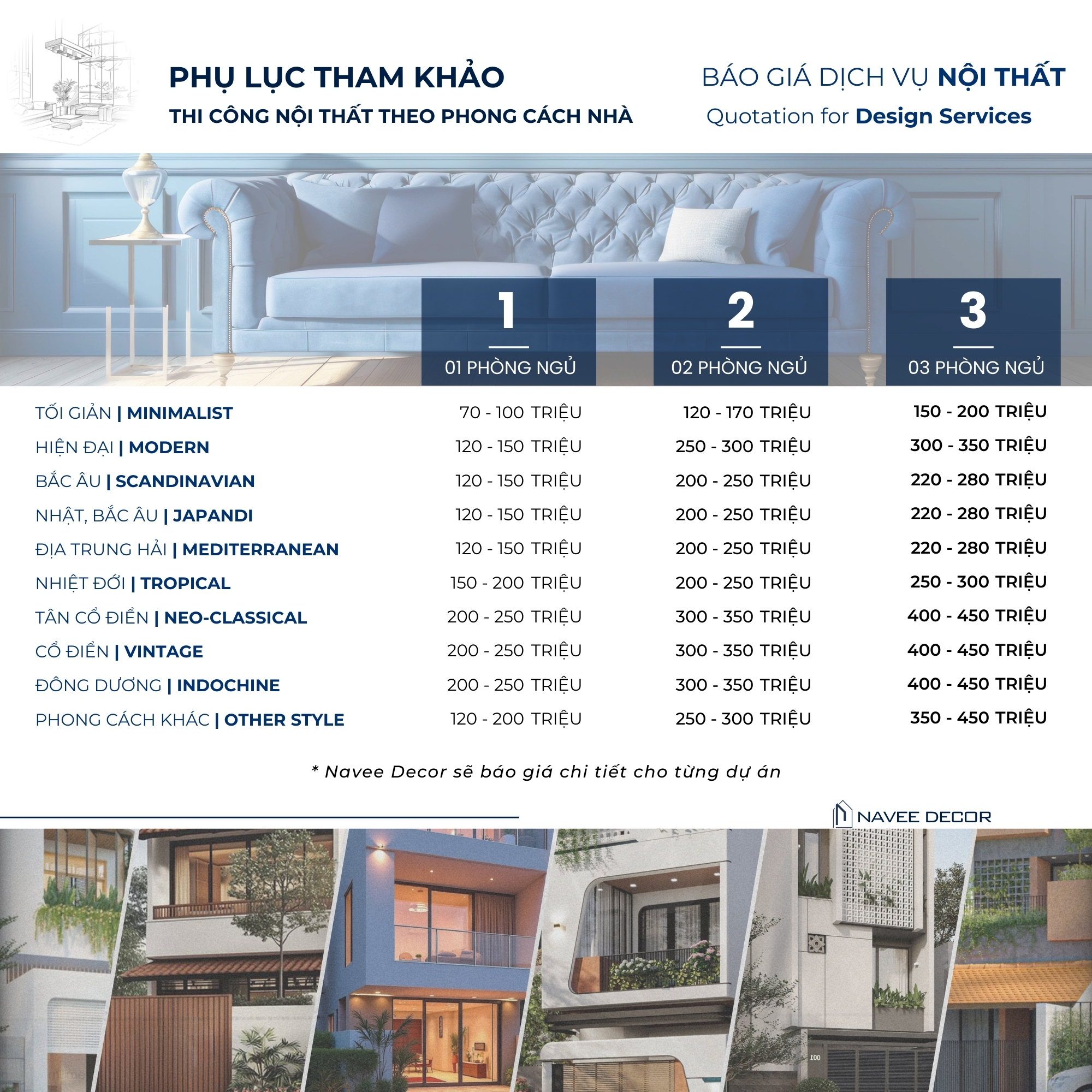 11. Phụ lục tham khảo chi phí thi công nội thất theo phong cách
