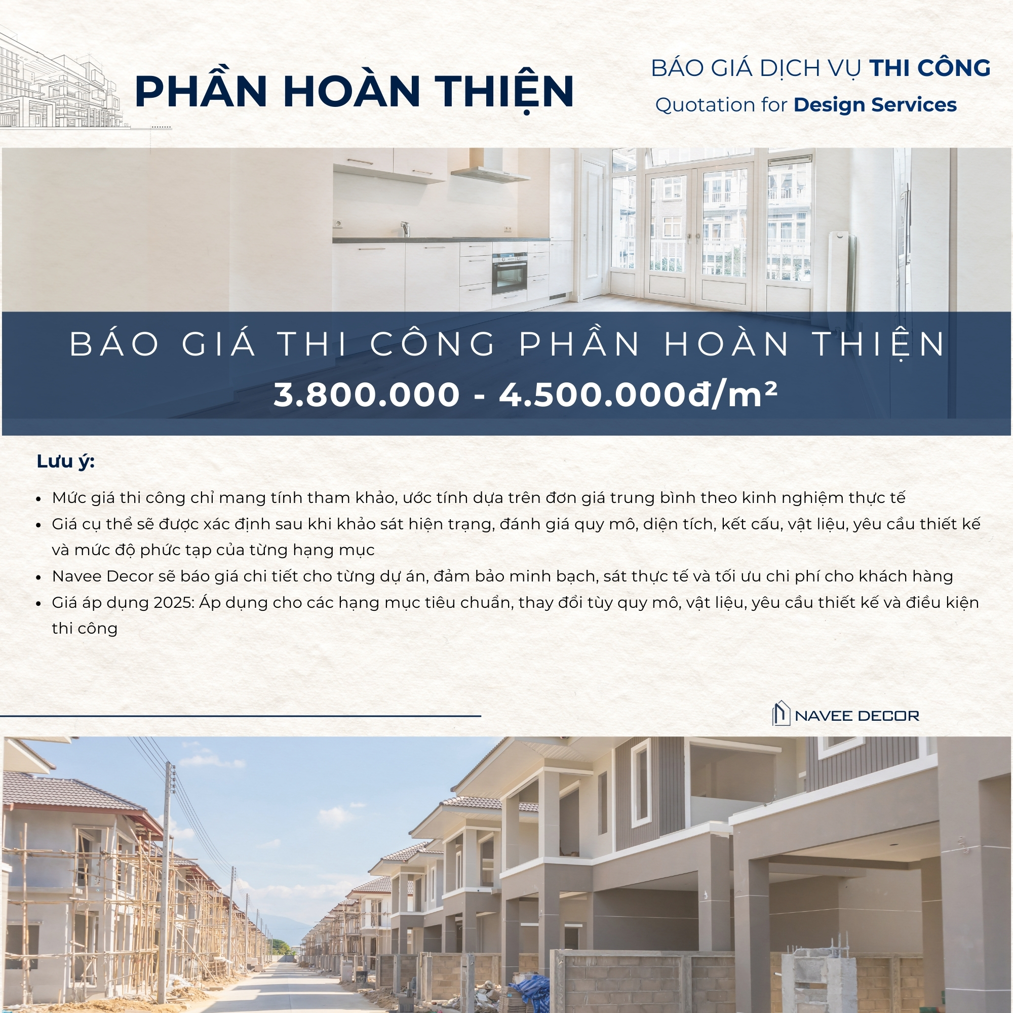 Navee Decor sẽ tư vấn chi tiết và báo giá cụ thể cho từng dự án dựa trên nhu cầu và điều kiện thực tế.