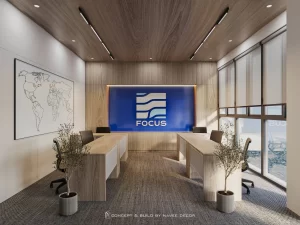 Văn phòng không chỉ là nơi làm việc mà còn là “bộ mặt thương hiệu”. Focus Office được Navee Decor thiết kế theo định hướng hiện đại tối giản, chuyên nghiệp. Phản ánh rõ tinh thần năng động, gia tăng giá trị thương hiệu và hỗ trợ tăng trưởng dài hạn và tầm nhìn quốc tế của doanh nghiệp.