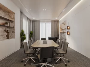 - Thiết kế văn phòng hướng đến giá trị bền vững – Bố cục không gian được tính toán kỹ lưỡng nhằm tối ưu diện tích sử dụng, đồng thời đảm bảo lưu thông nội bộ khoa học – yếu tố quan trọng trong thiết kế thi công văn phòng chuyên nghiệp.