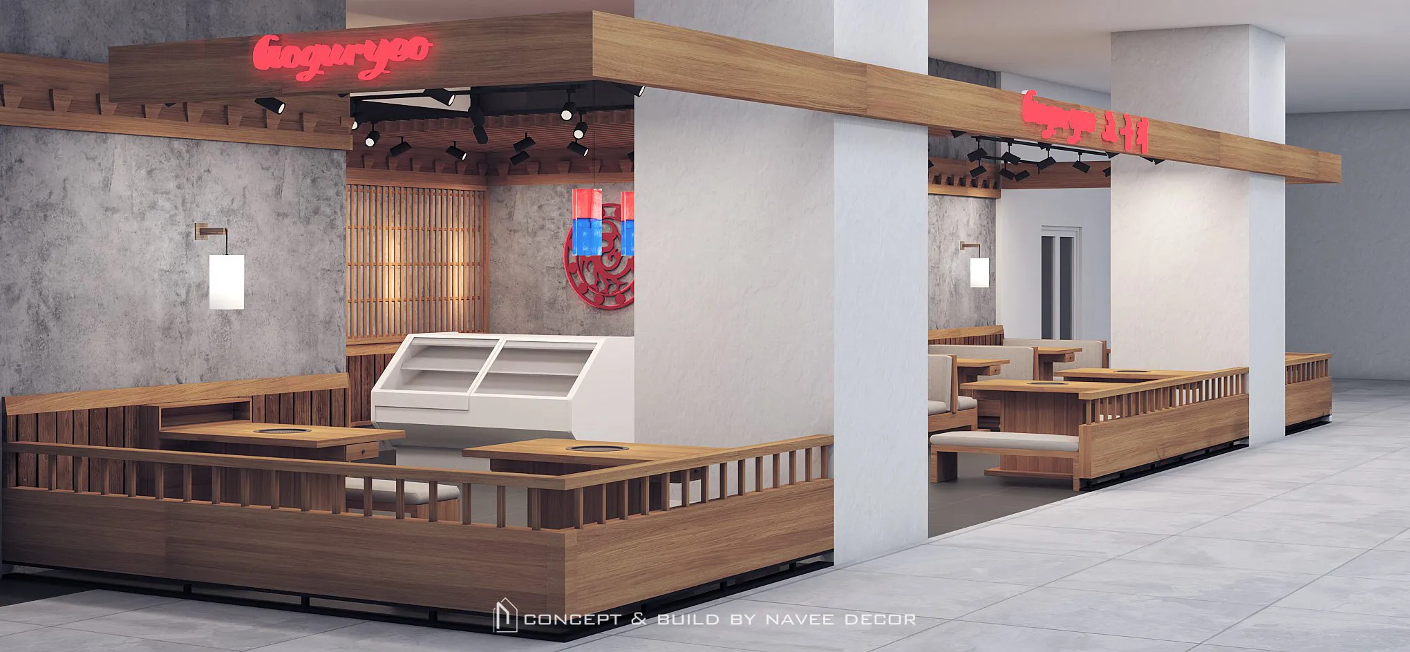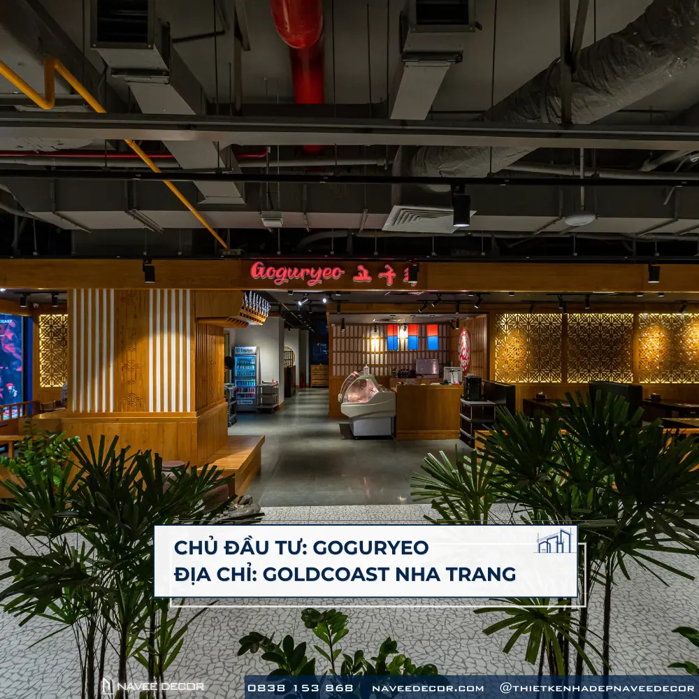 Nhà hàng Hàn Quốc Goguryeo BBQ là dự án thiết kế và thi công nội thất hướng đến việc tái hiện tinh thần kiến trúc Á Đông trong một không gian ẩm thực hiện đại, ấm cúng và giàu trải nghiệm.