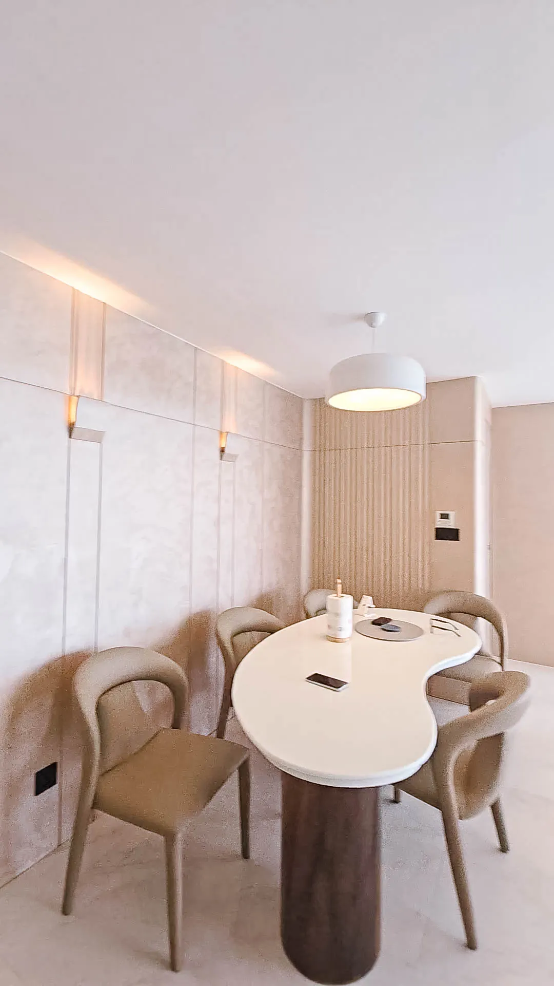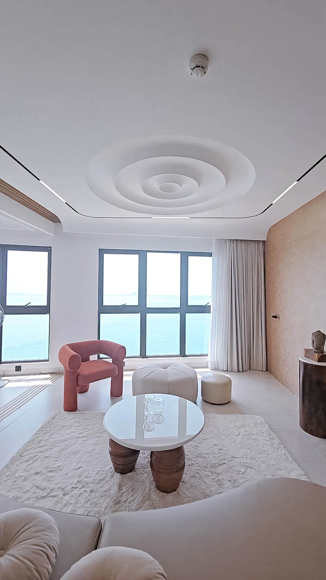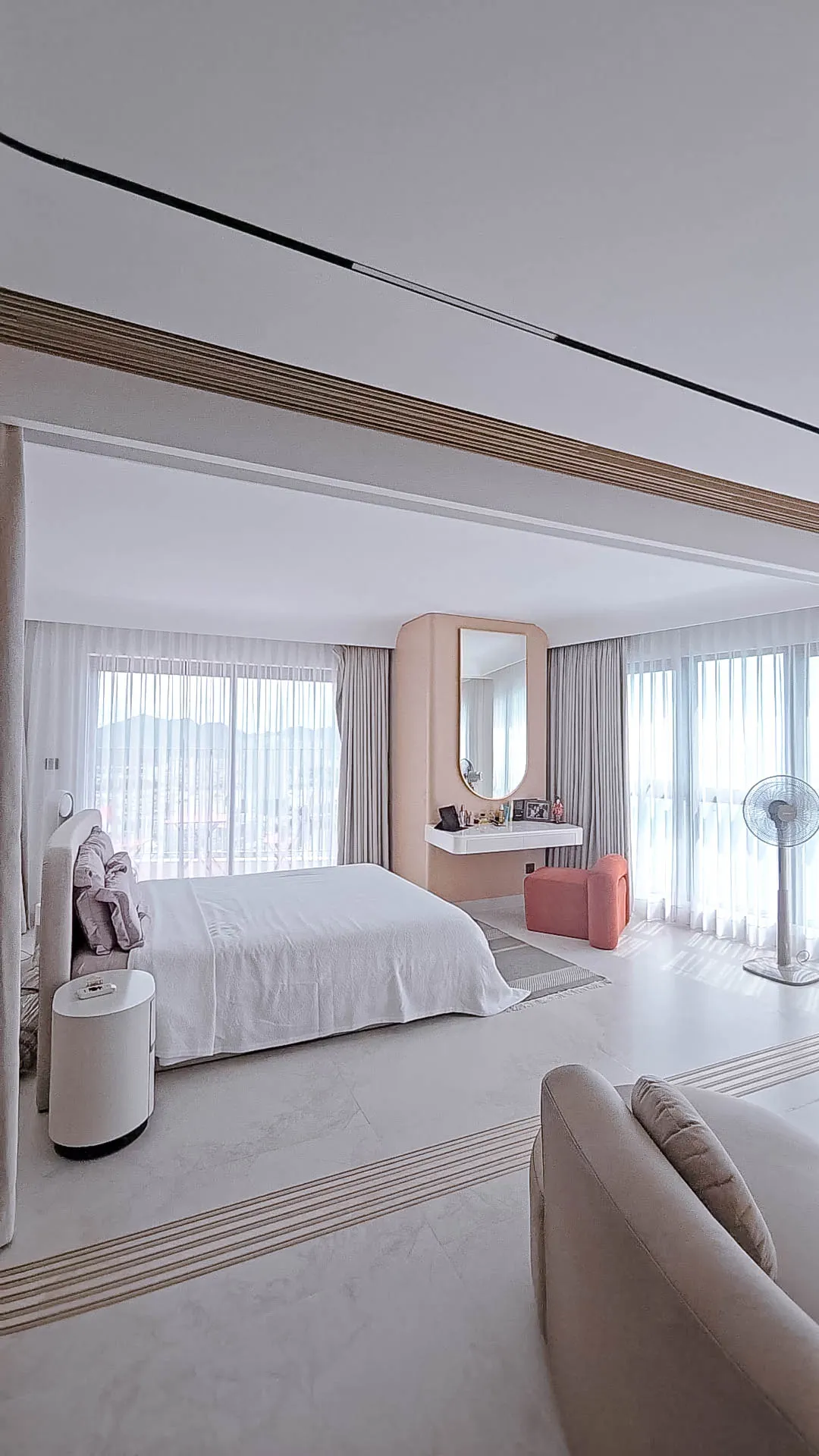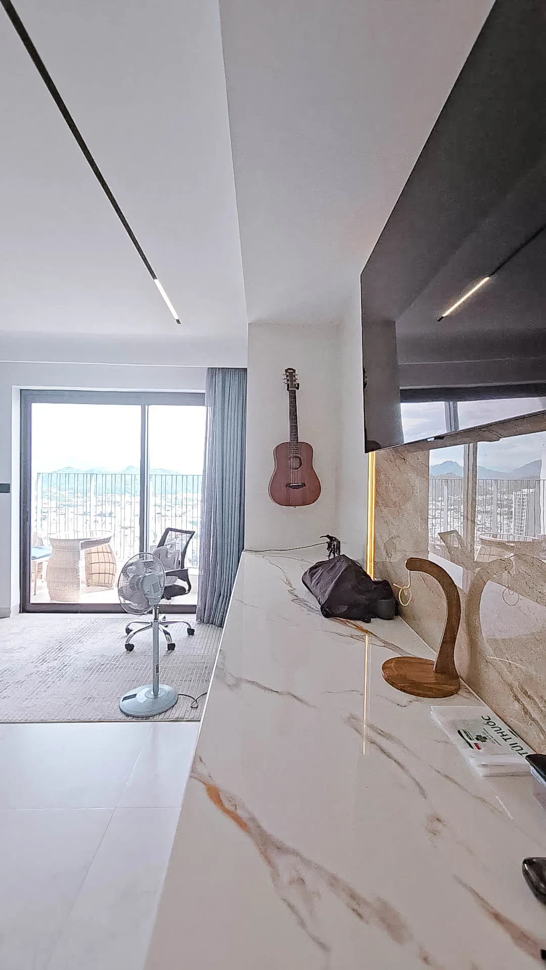 Căn hộ được định hướng theo phong cách Modern Minimal kết hợp hơi hướng nghỉ dưỡng, sử dụng bảng màu trung tính cùng các đường cong mềm mại, tạo nên một không gian sống nhẹ nhàng, tinh tế và giàu cảm xúc.