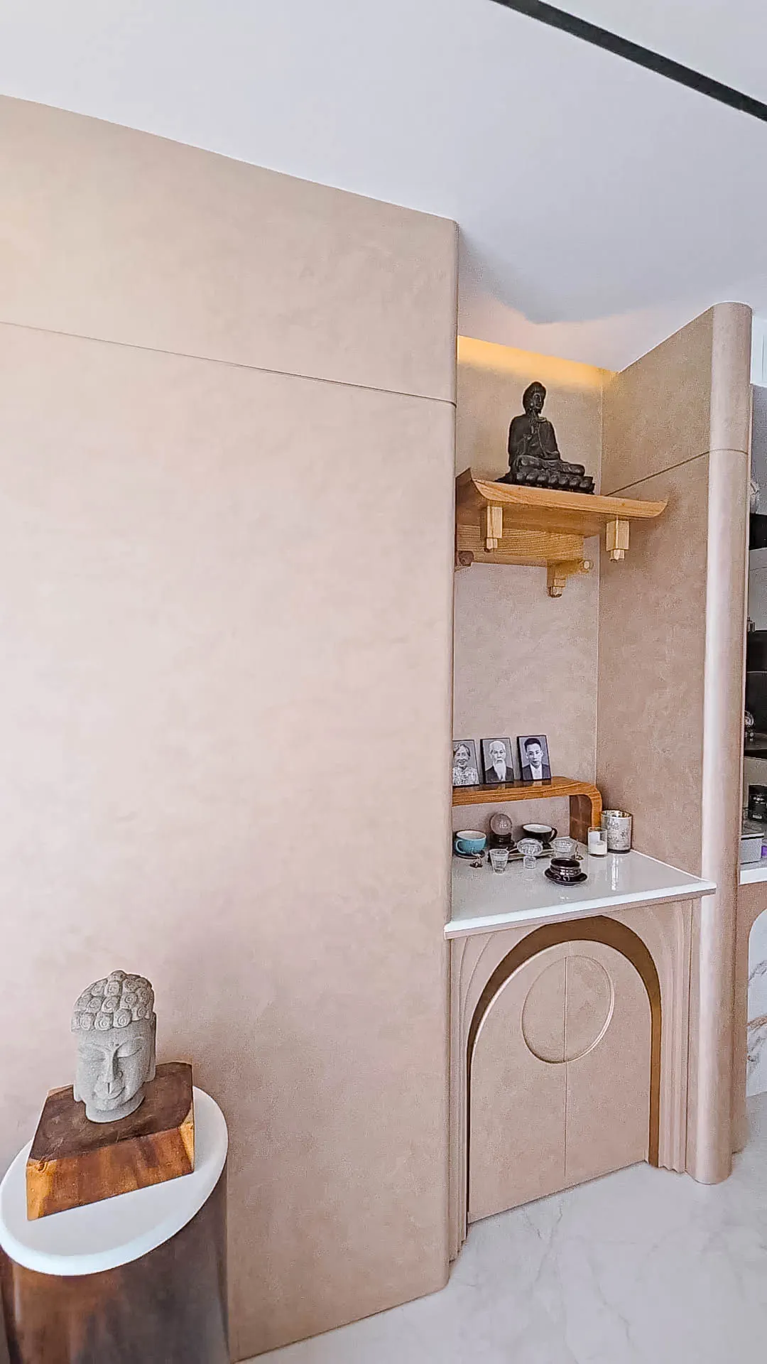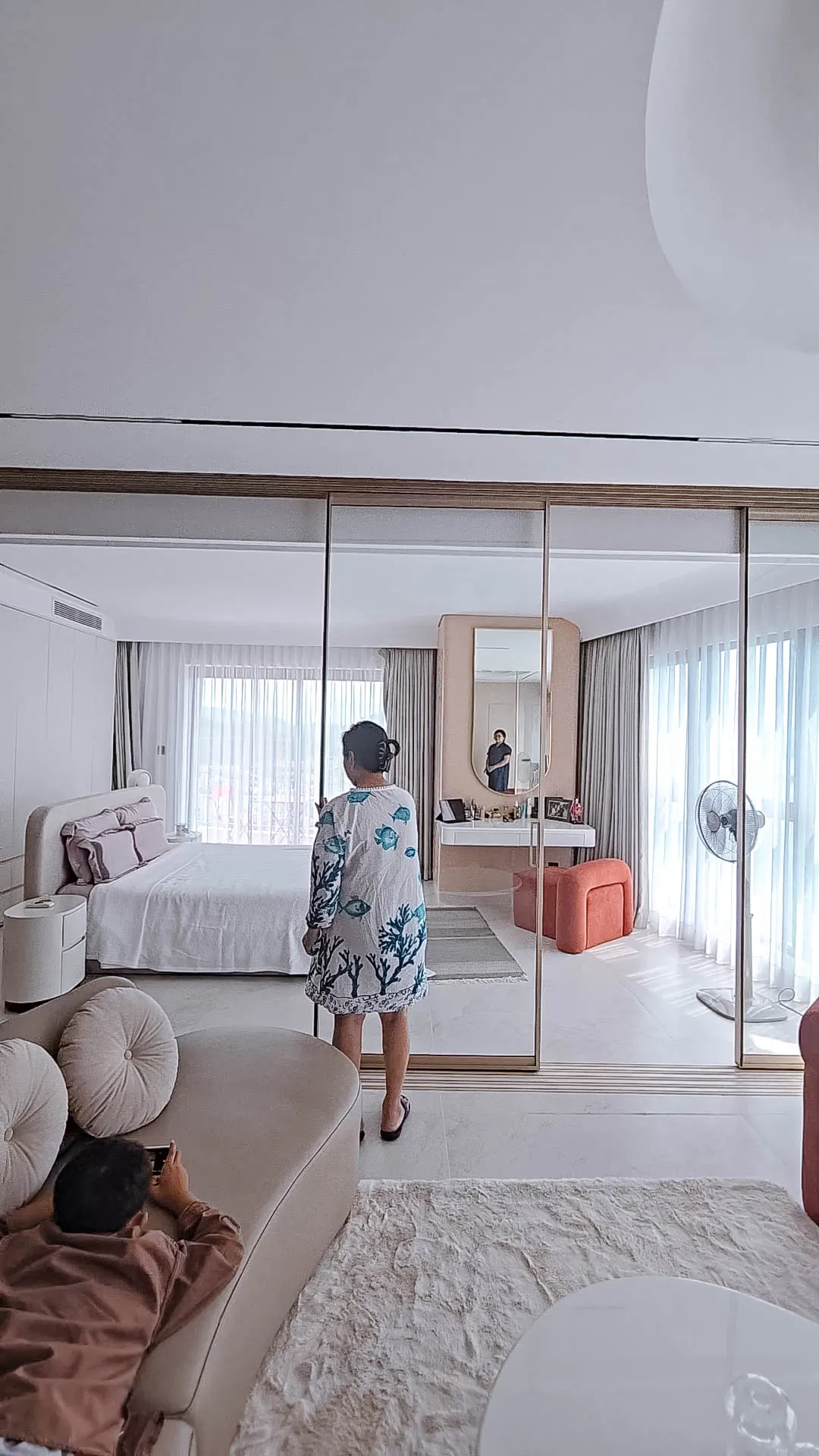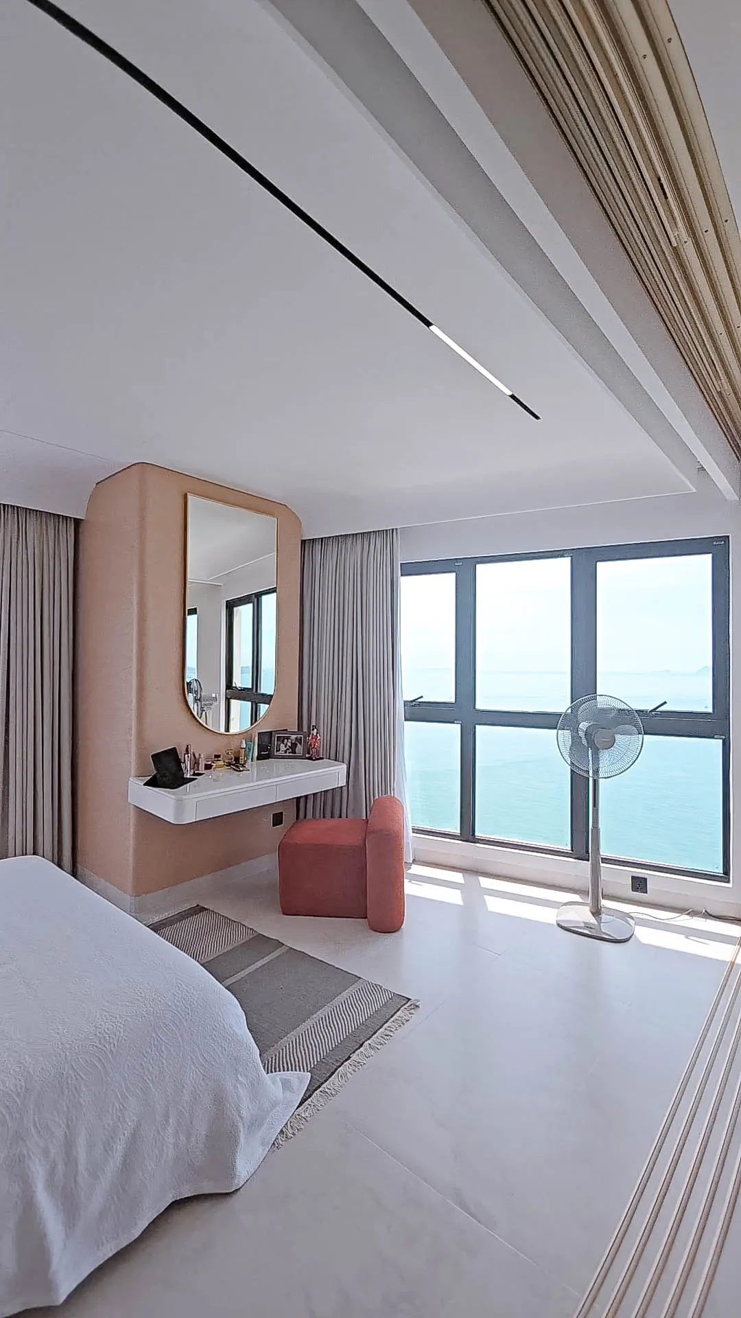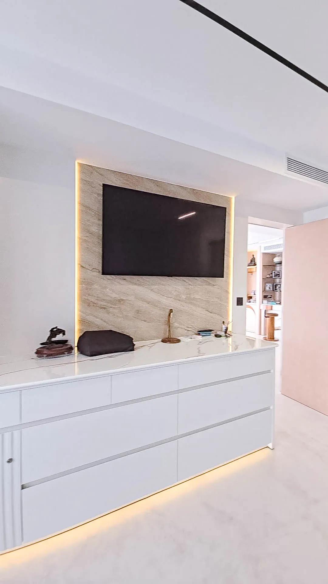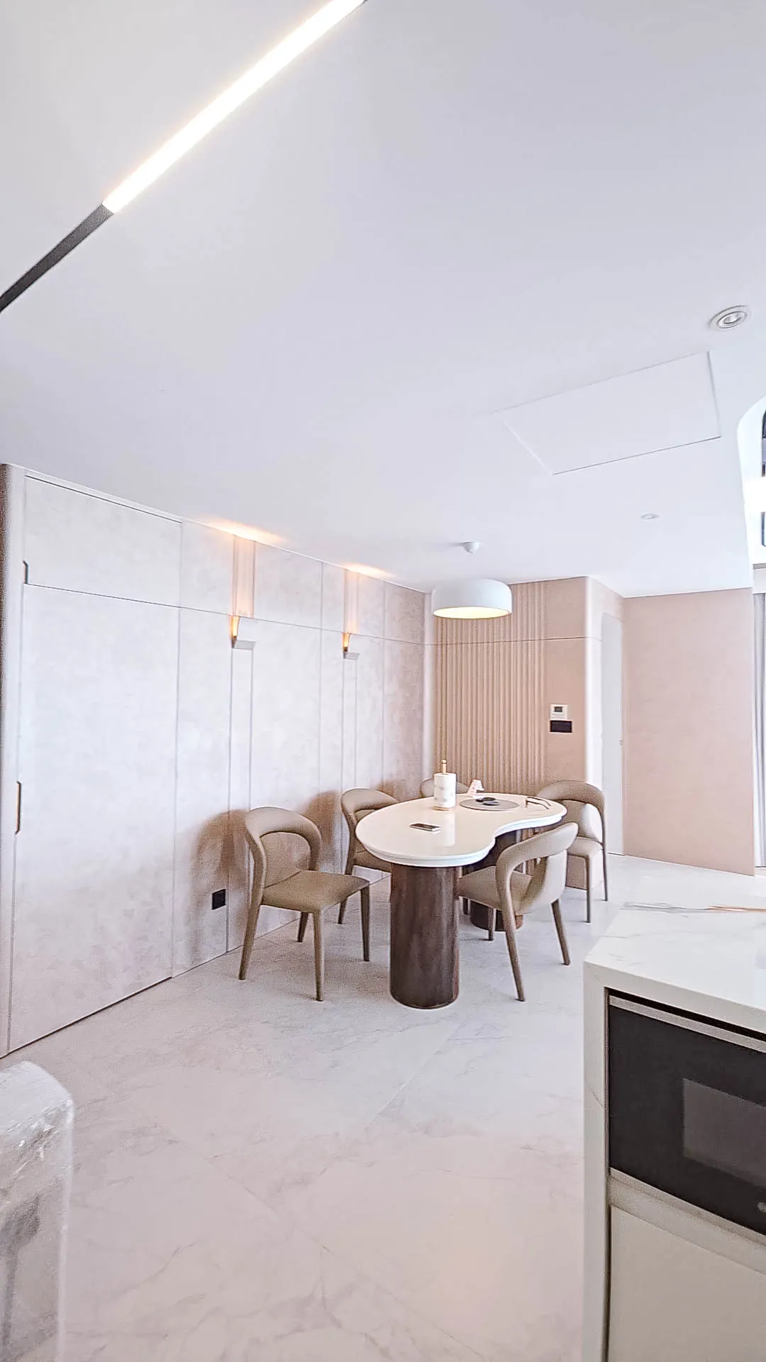 Căn hộ được định hướng theo phong cách Modern Minimal kết hợp hơi hướng nghỉ dưỡng, sử dụng bảng màu trung tính cùng các đường cong mềm mại, tạo nên một không gian sống nhẹ nhàng, tinh tế và giàu cảm xúc.