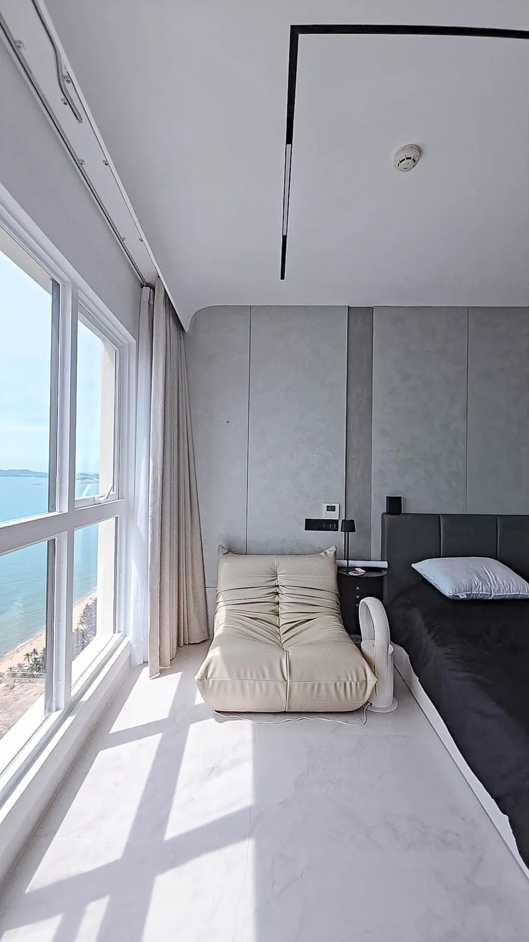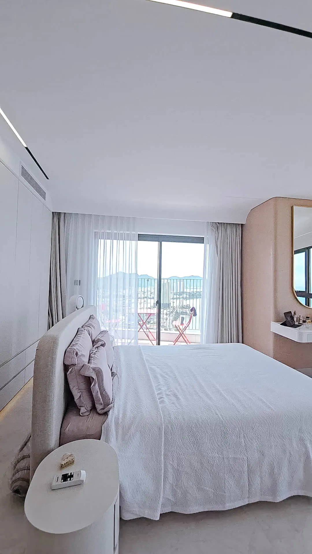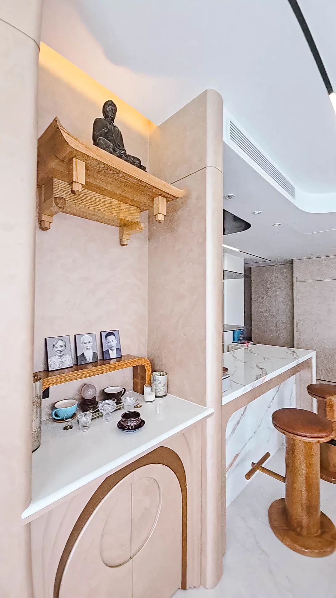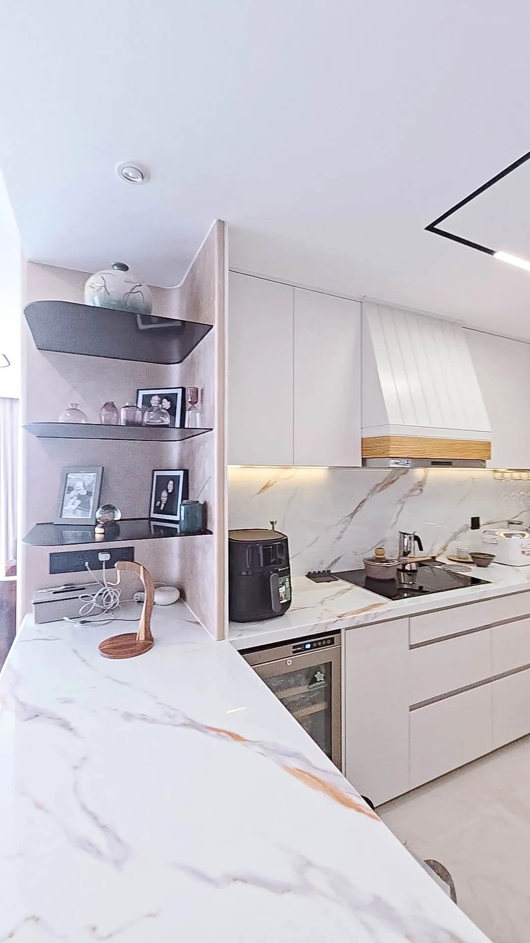 Căn hộ được định hướng theo phong cách Modern Minimal kết hợp hơi hướng nghỉ dưỡng, sử dụng bảng màu trung tính cùng các đường cong mềm mại, tạo nên một không gian sống nhẹ nhàng, tinh tế và giàu cảm xúc.