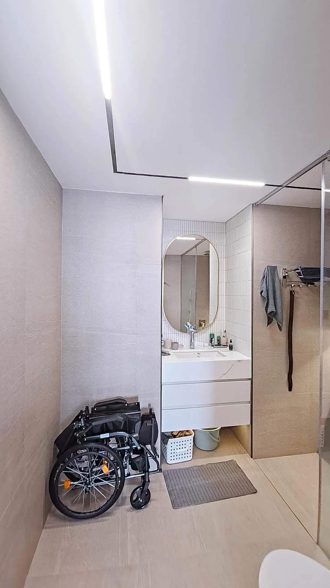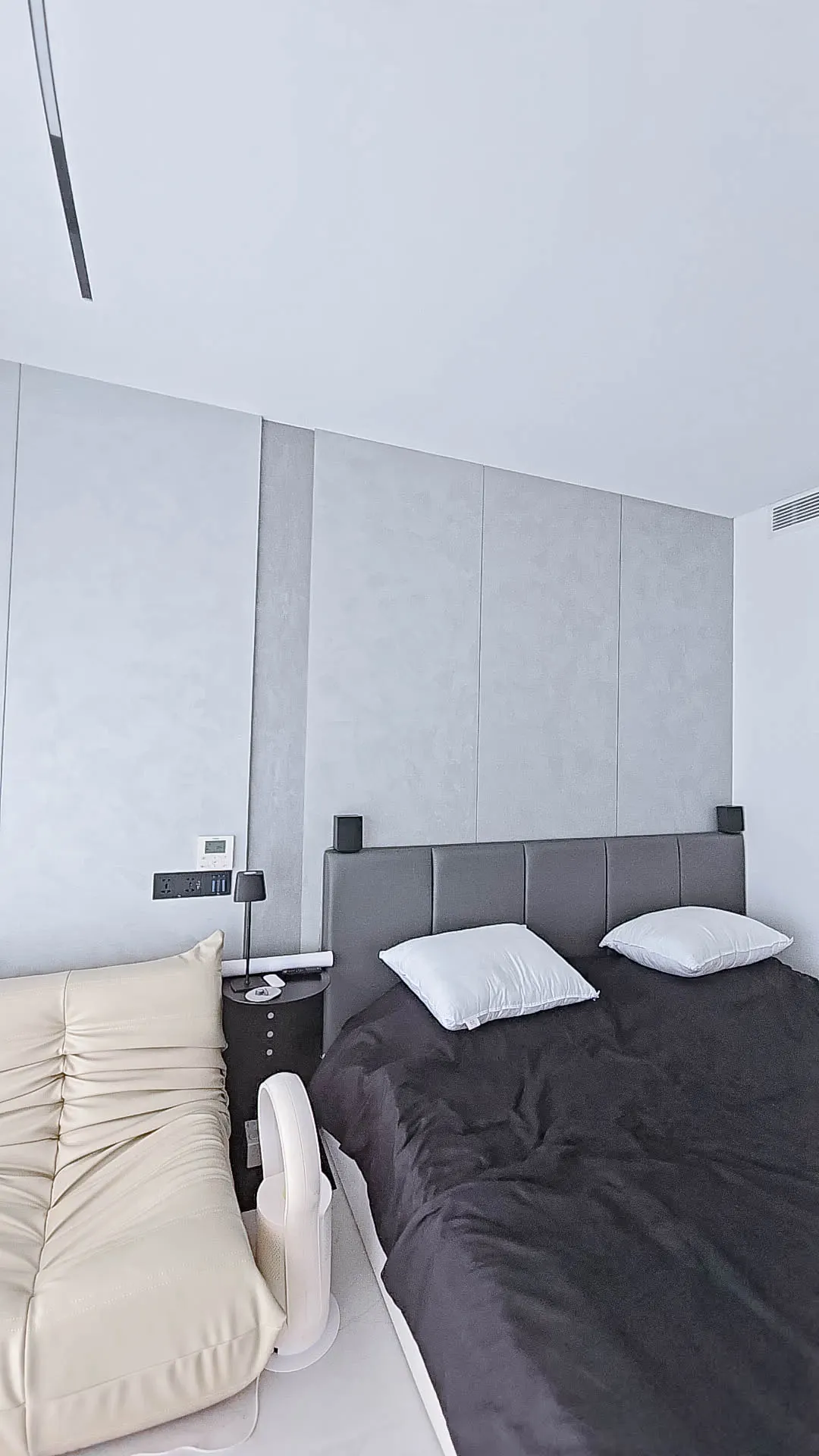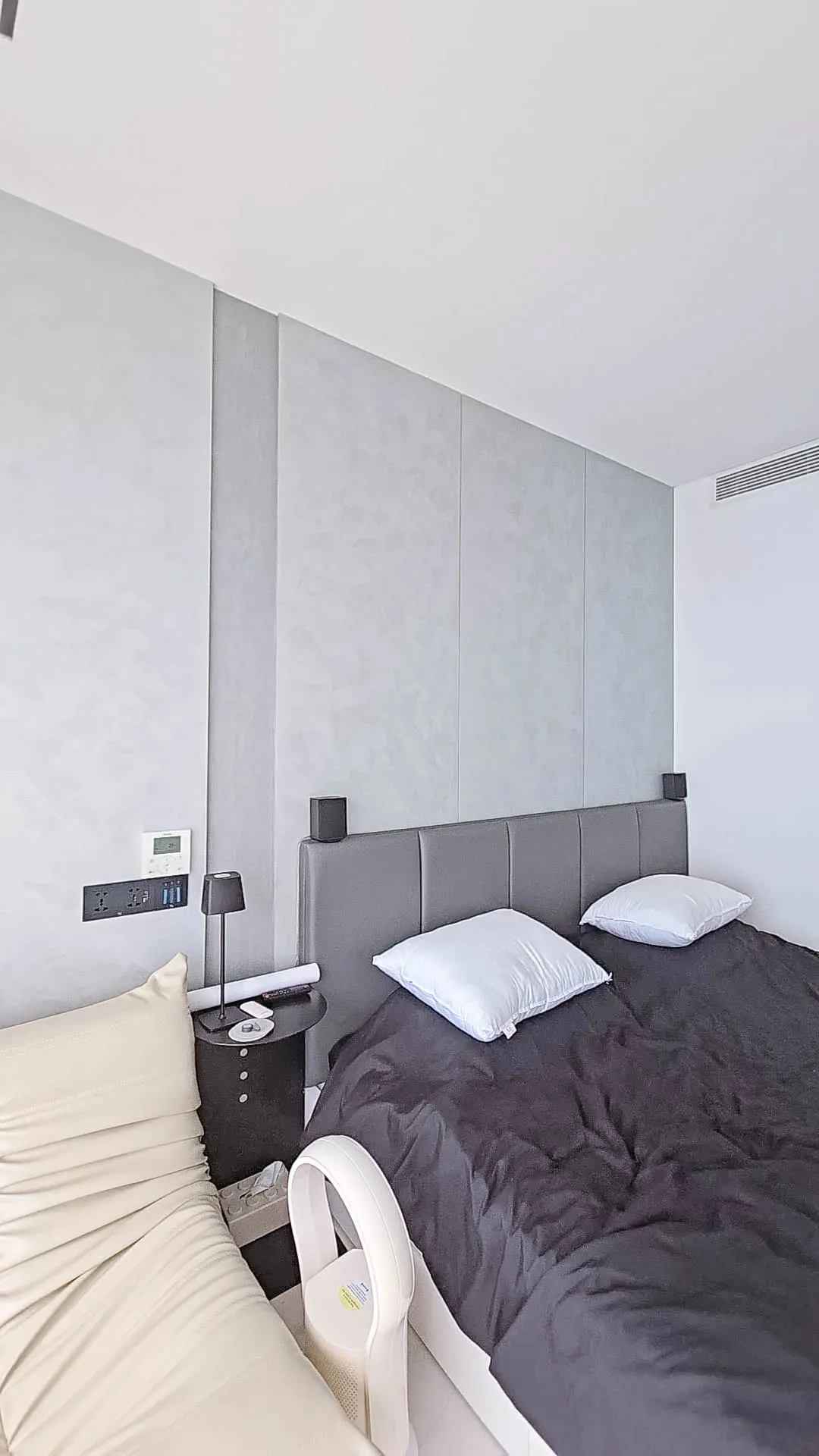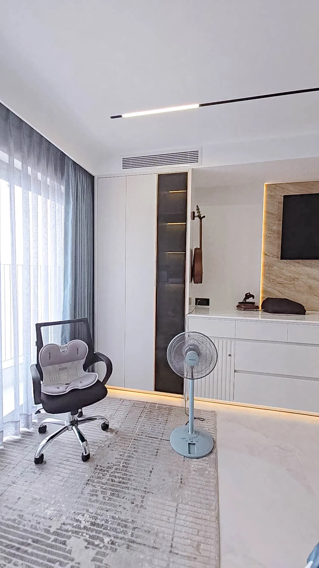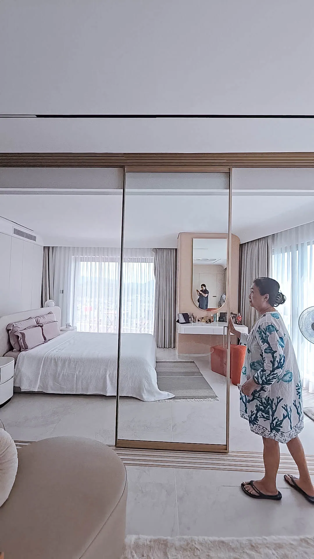 Căn hộ được định hướng theo phong cách Modern Minimal kết hợp hơi hướng nghỉ dưỡng, sử dụng bảng màu trung tính cùng các đường cong mềm mại, tạo nên một không gian sống nhẹ nhàng, tinh tế và giàu cảm xúc.