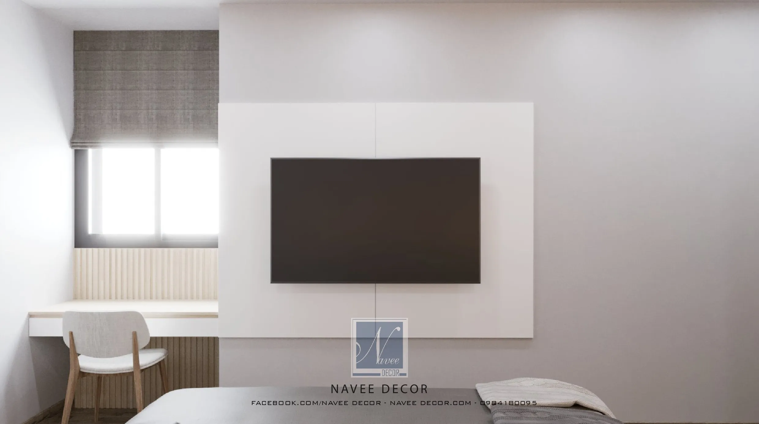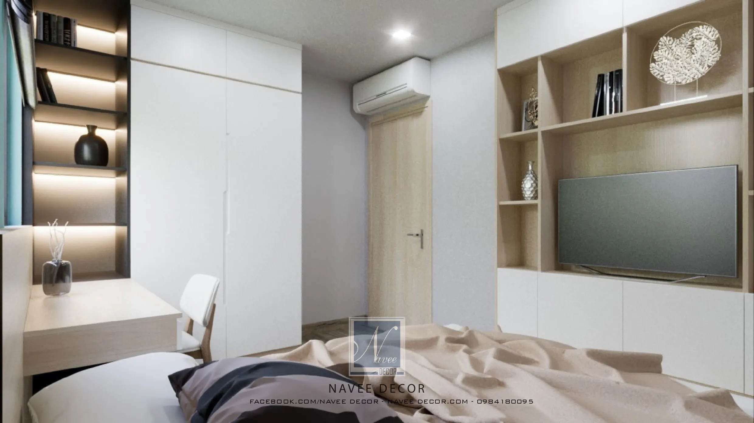 Phòng ngủ thiết kế thông thoáng, tiện nghi thông minh cho cuộc sống hiện đại.