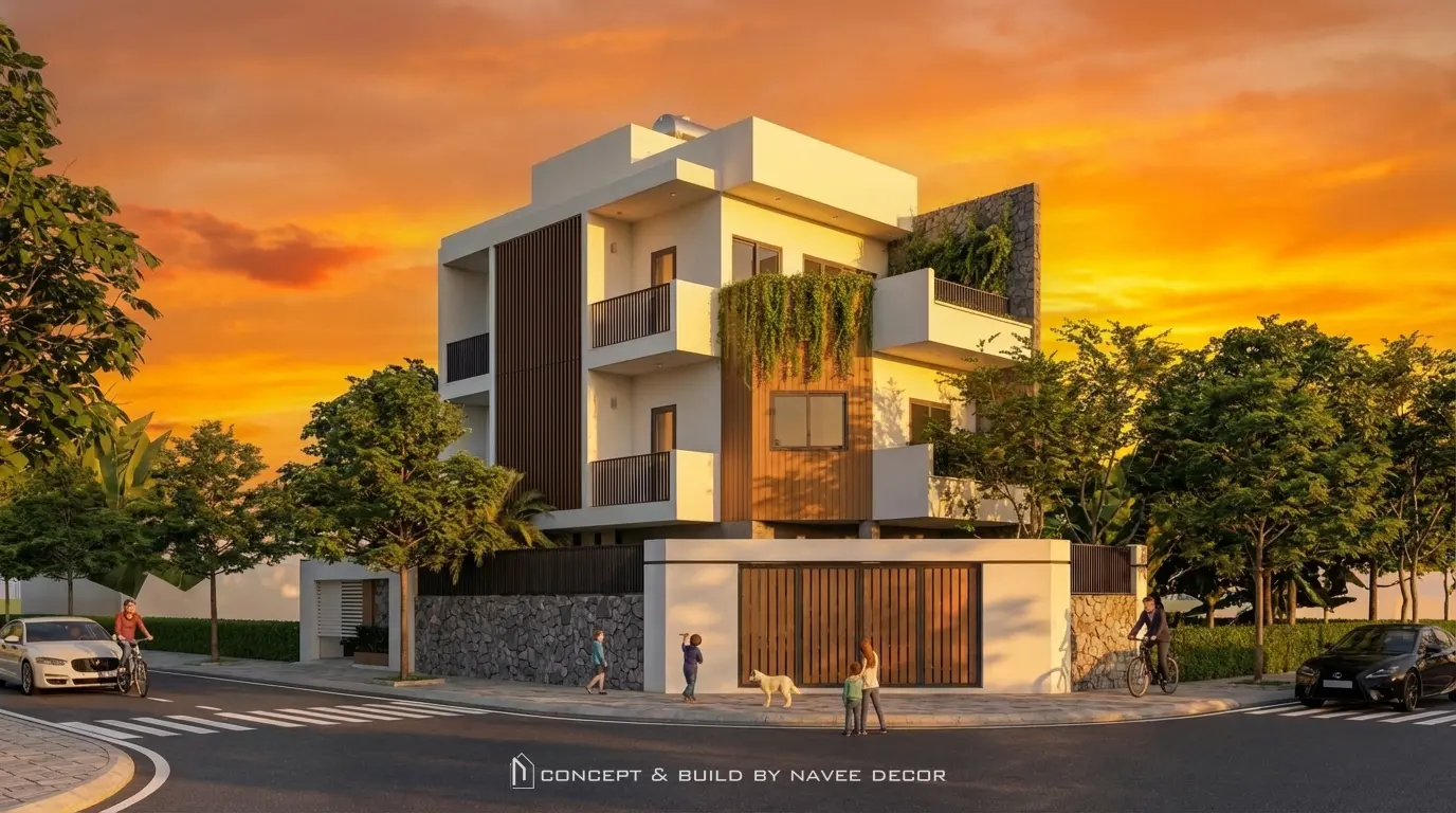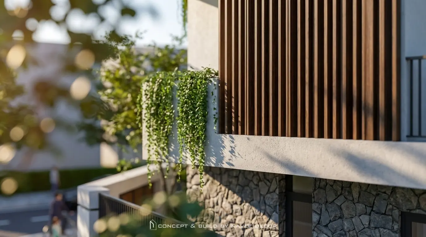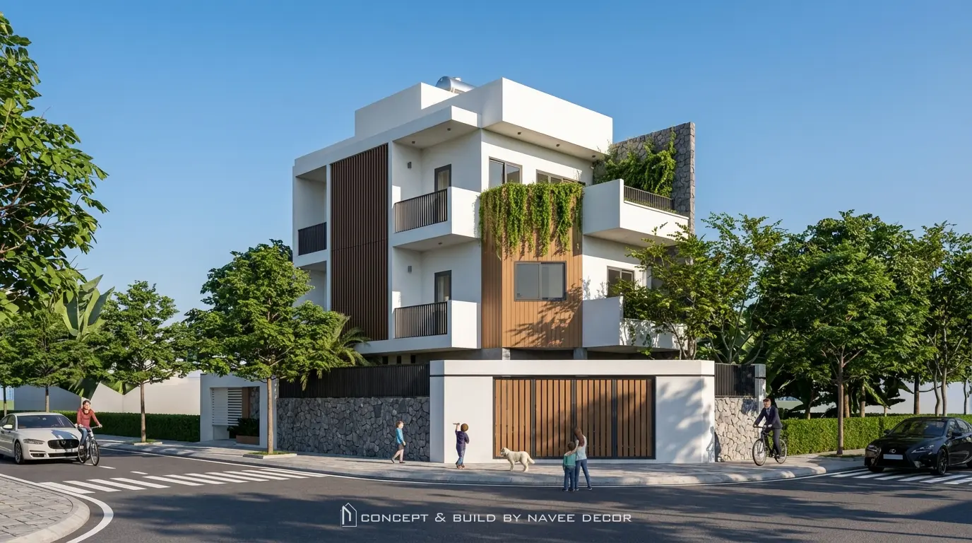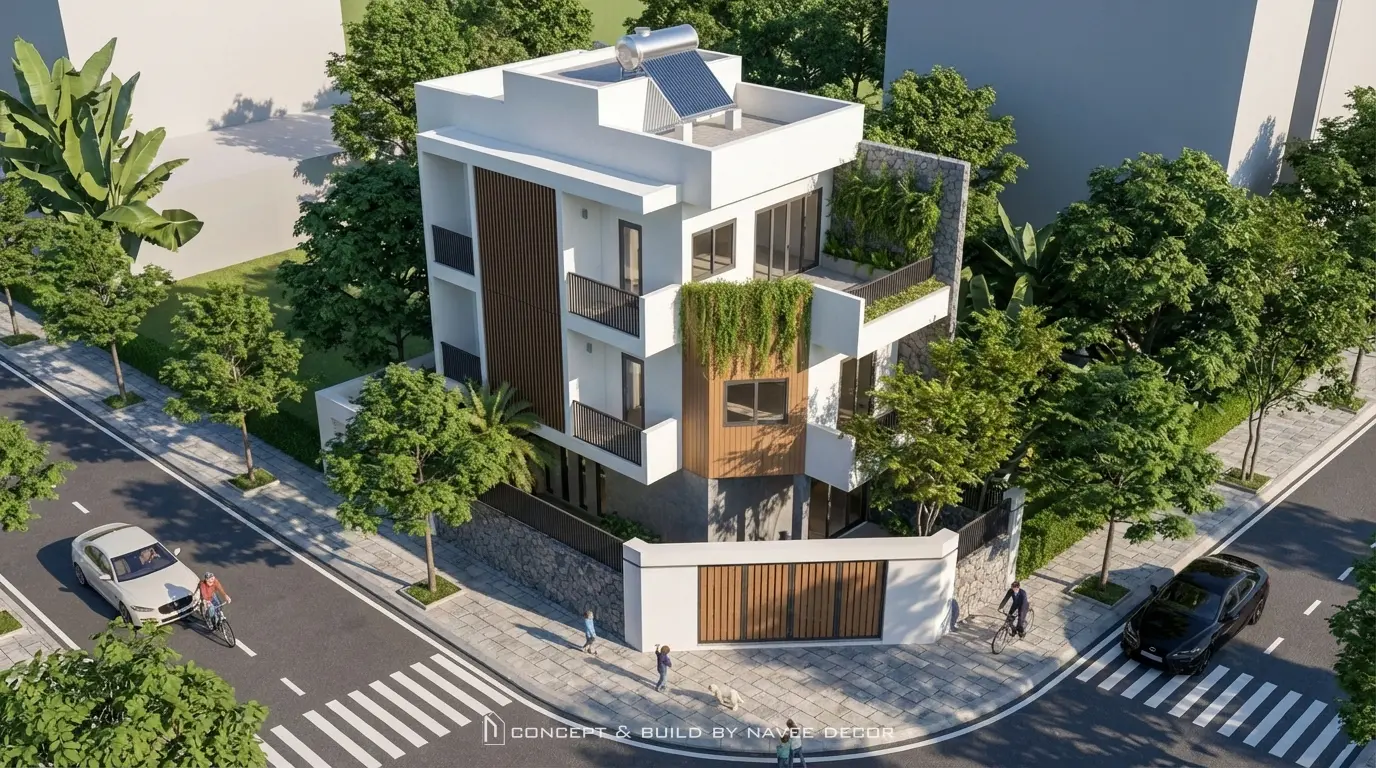Biệt thự tọa lạc tại lô góc 2 mặt tiền, khai thác tối đa lợi thế thông thoáng, ánh sáng và tầm nhìn. Tổng thể công trình là sự giao thoa giữa hình khối hiện đại, vật liệu tự nhiên và giải pháp xanh – đúng tinh thần sống nghỉ dưỡng giữa lòng phố biển.