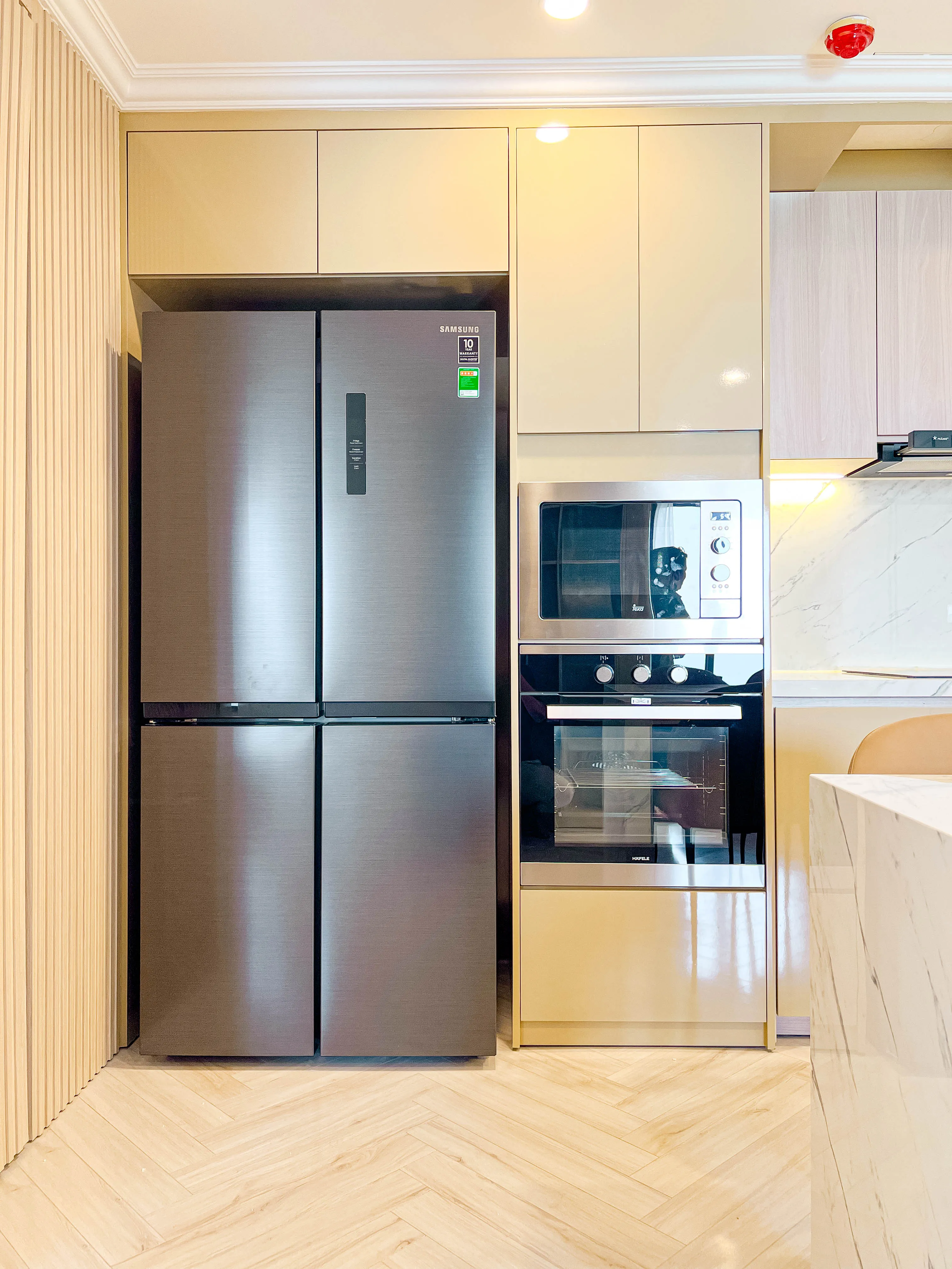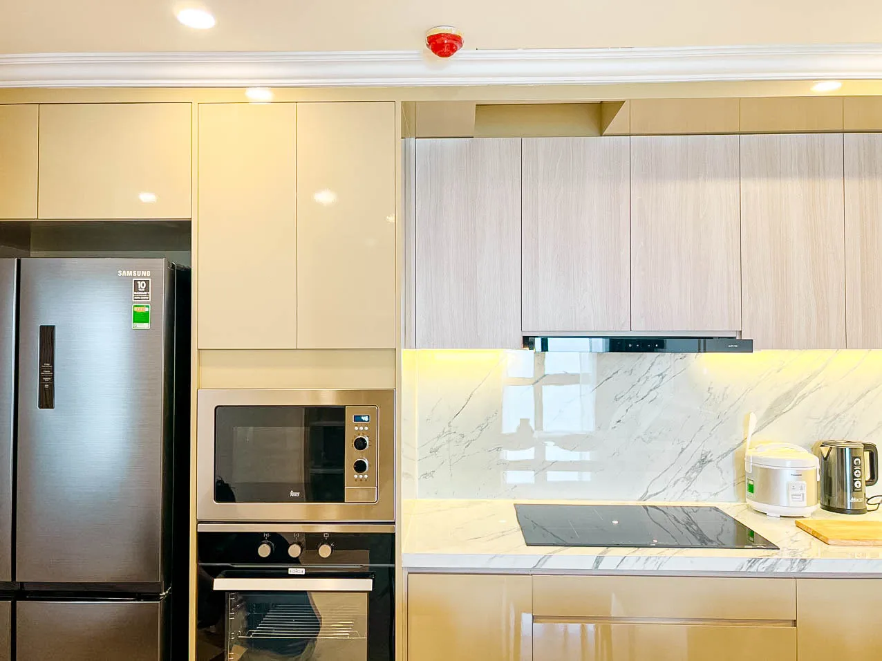 - Tích hợp thiết bị âm tủ giúp không gian gọn gàng, chuẩn chỉnh.