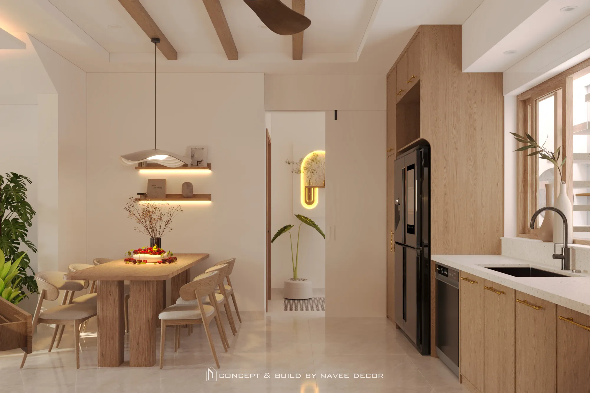 Giữa phố thị ồn ào, tổ ấm Navee House được Navee Decor kiến tạo như một khoảng lặng dịu dàng, nơi ánh sáng sớm mai len qua màu gỗ ấm hòa cùng hơi thở của “thiên nhiên” trong lành.
