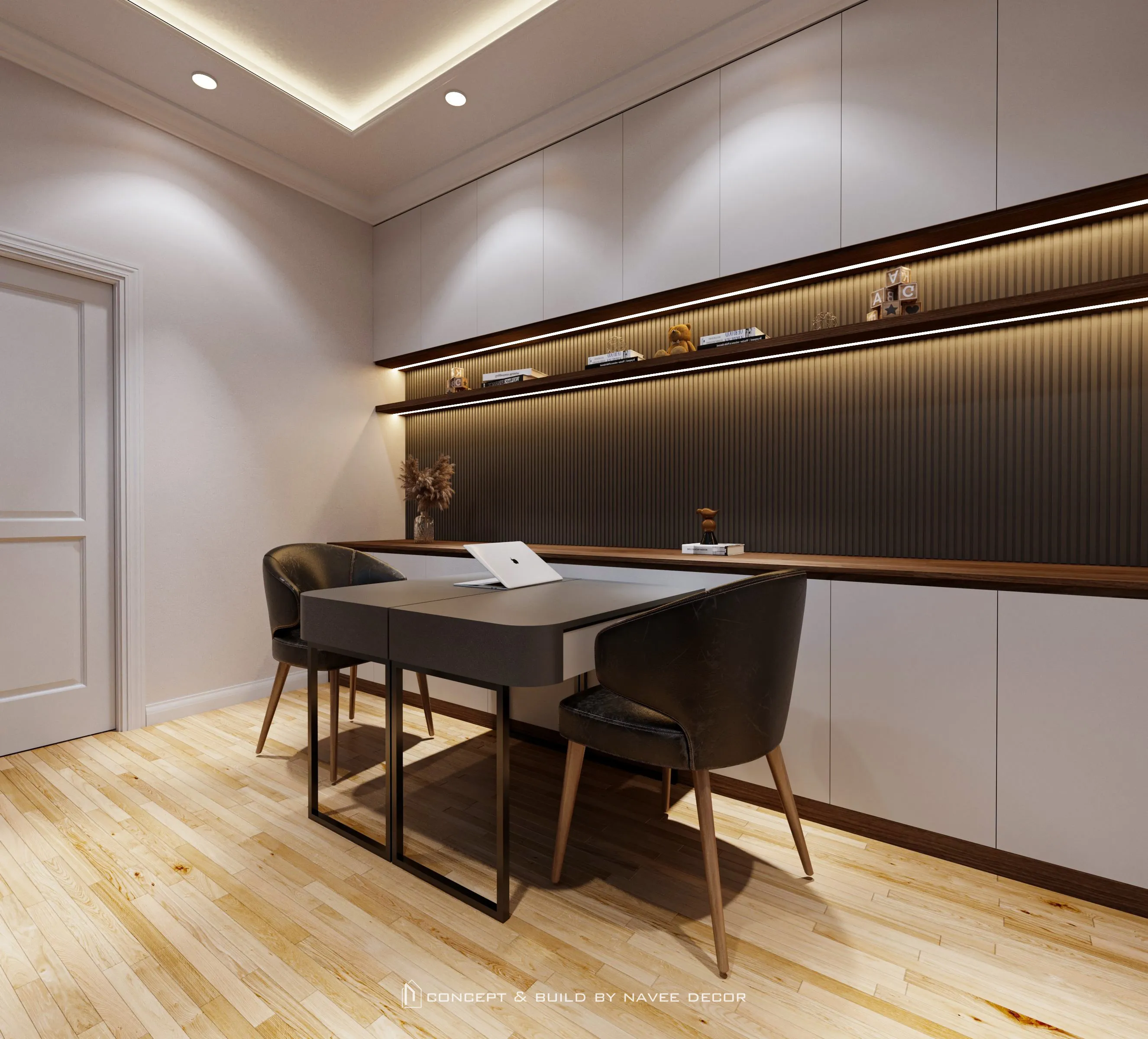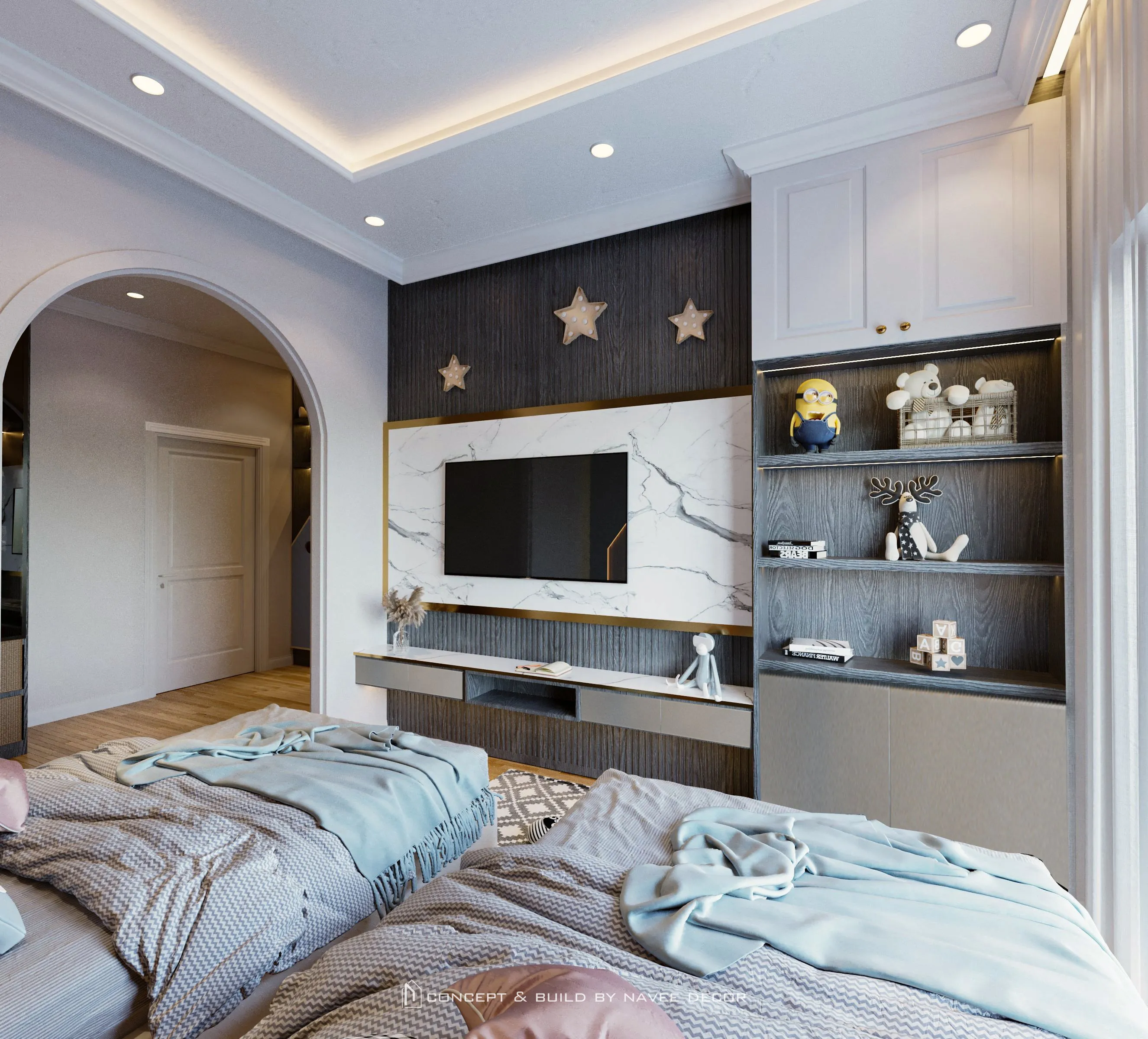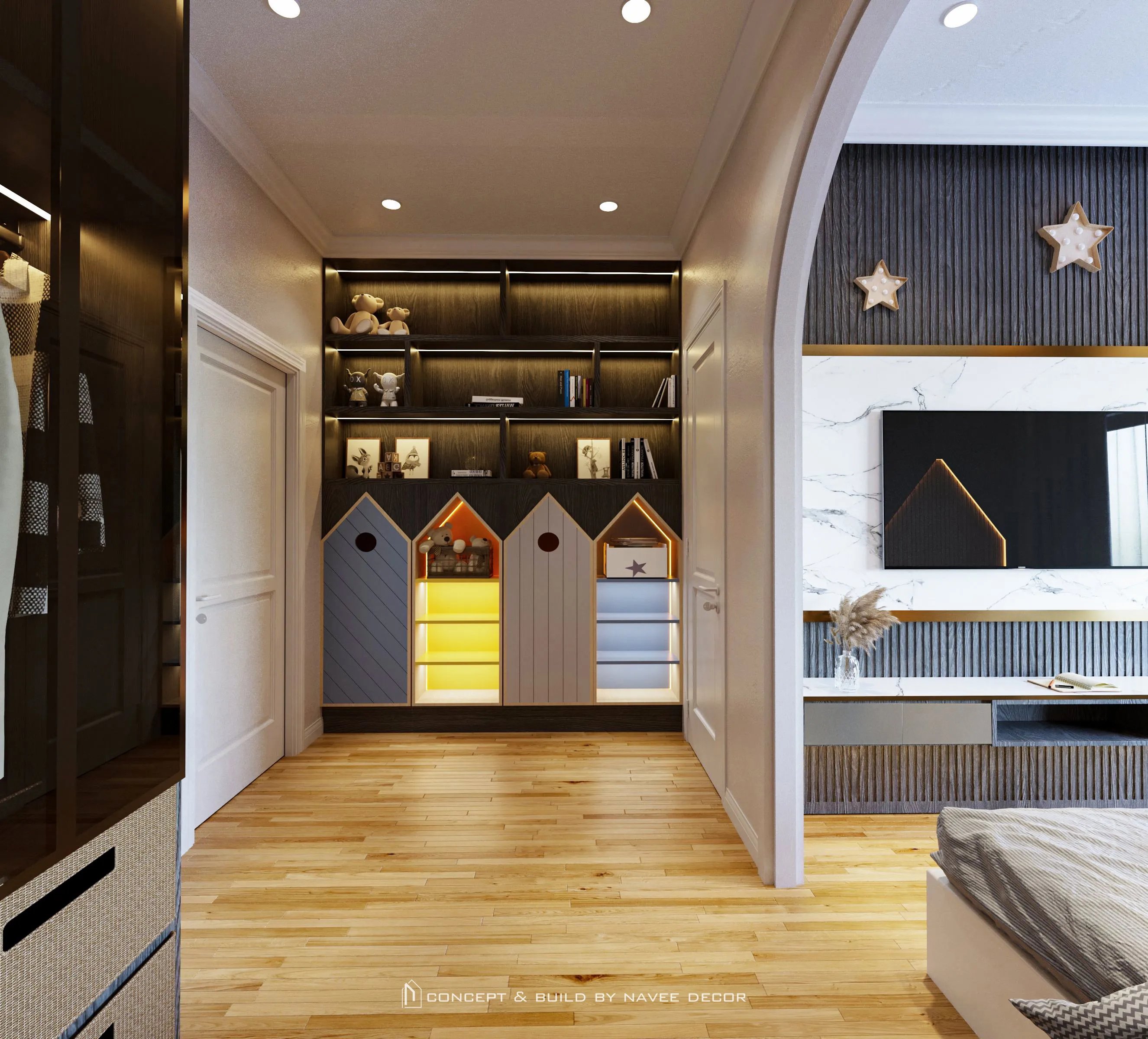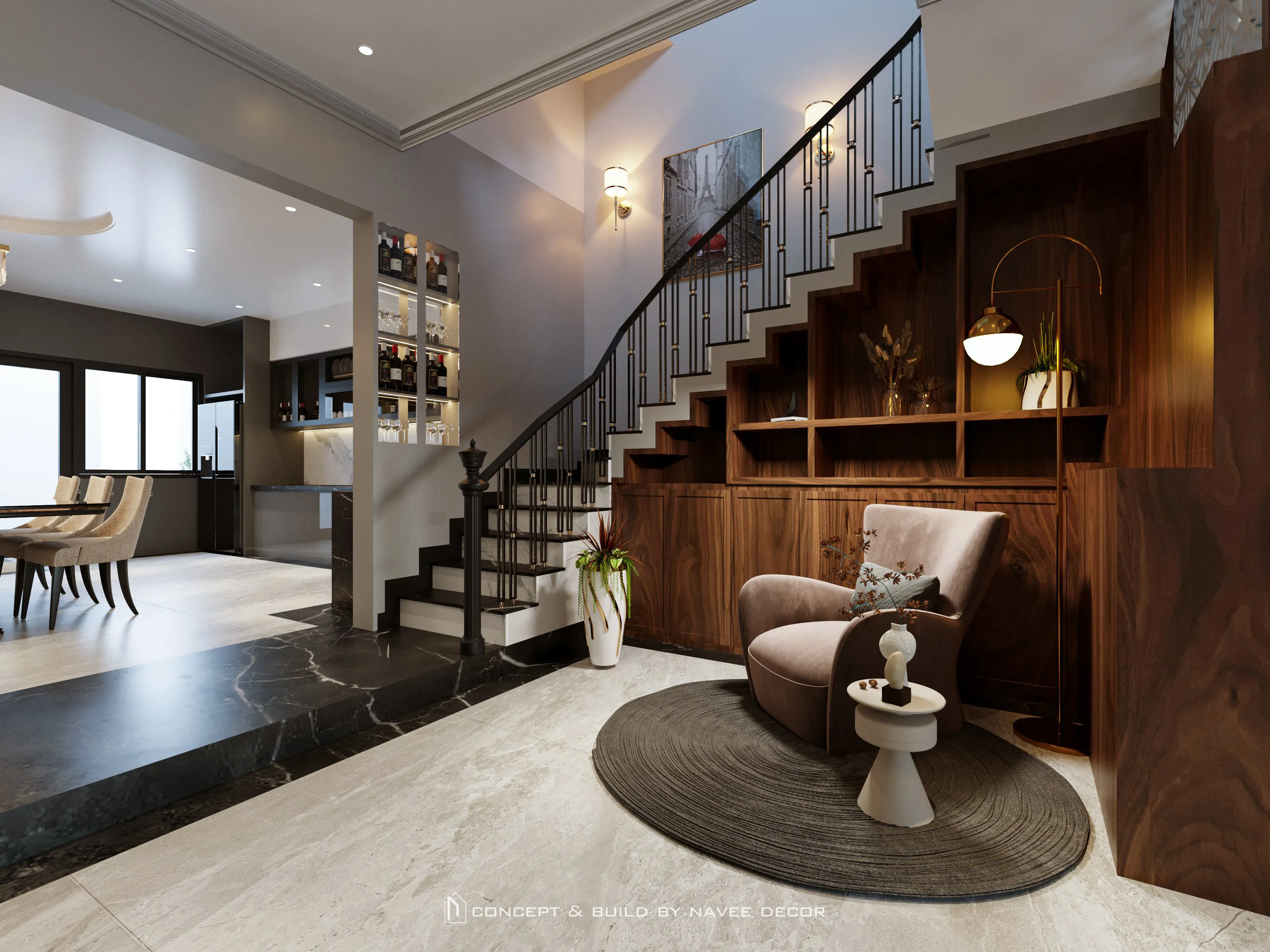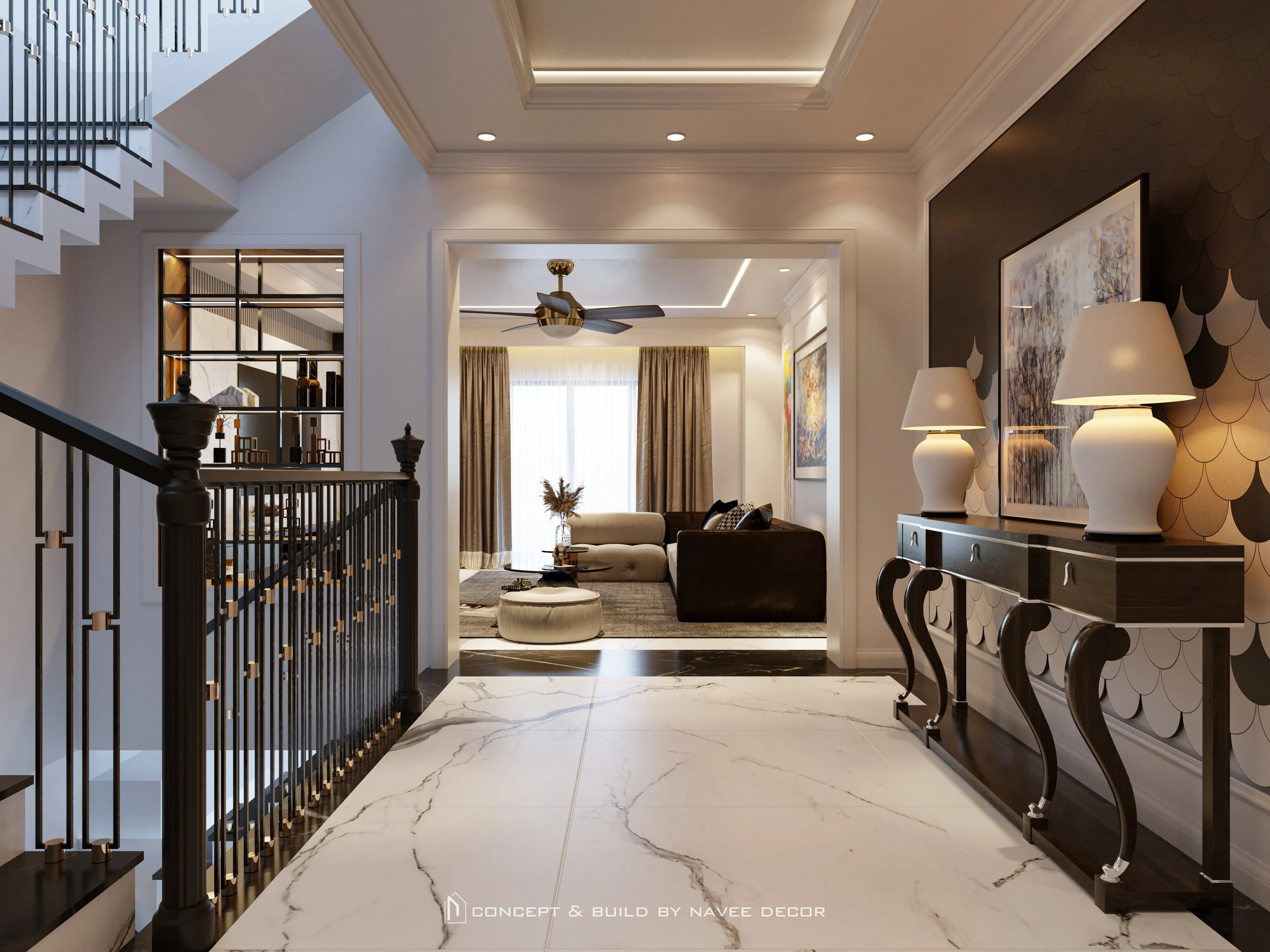 Giữa khu đô thị Hà Quang, Ngan’s House nổi bật với phong cách tân cổ điển tinh giản, mỗi chi tiết được tiết chế để đạt đến sự cân bằng thẩm mỹ và công năng. Đây không chỉ là một ngôi nhà, mà còn là không gian sống mang dấu ấn cá nhân rõ nét – đúng với tinh thần thiết kế của Navee Decor.