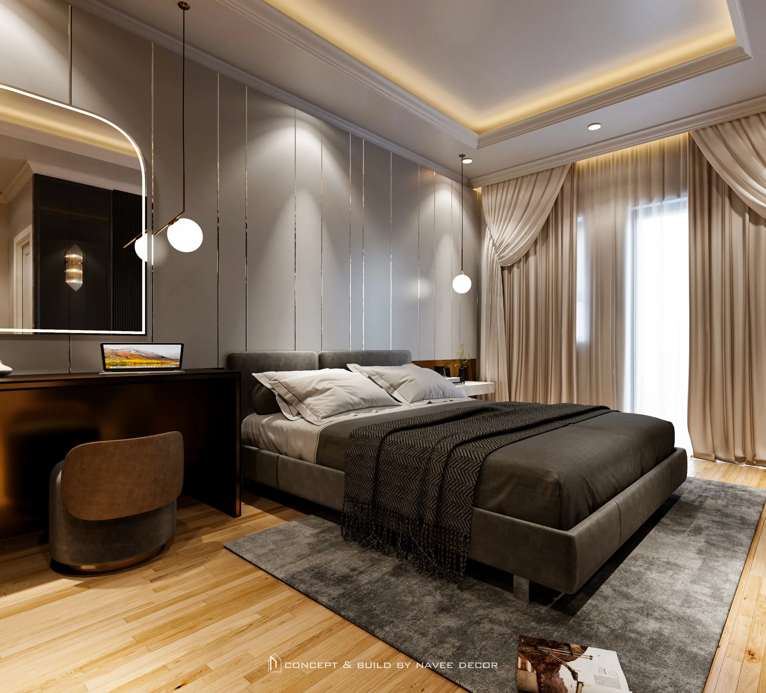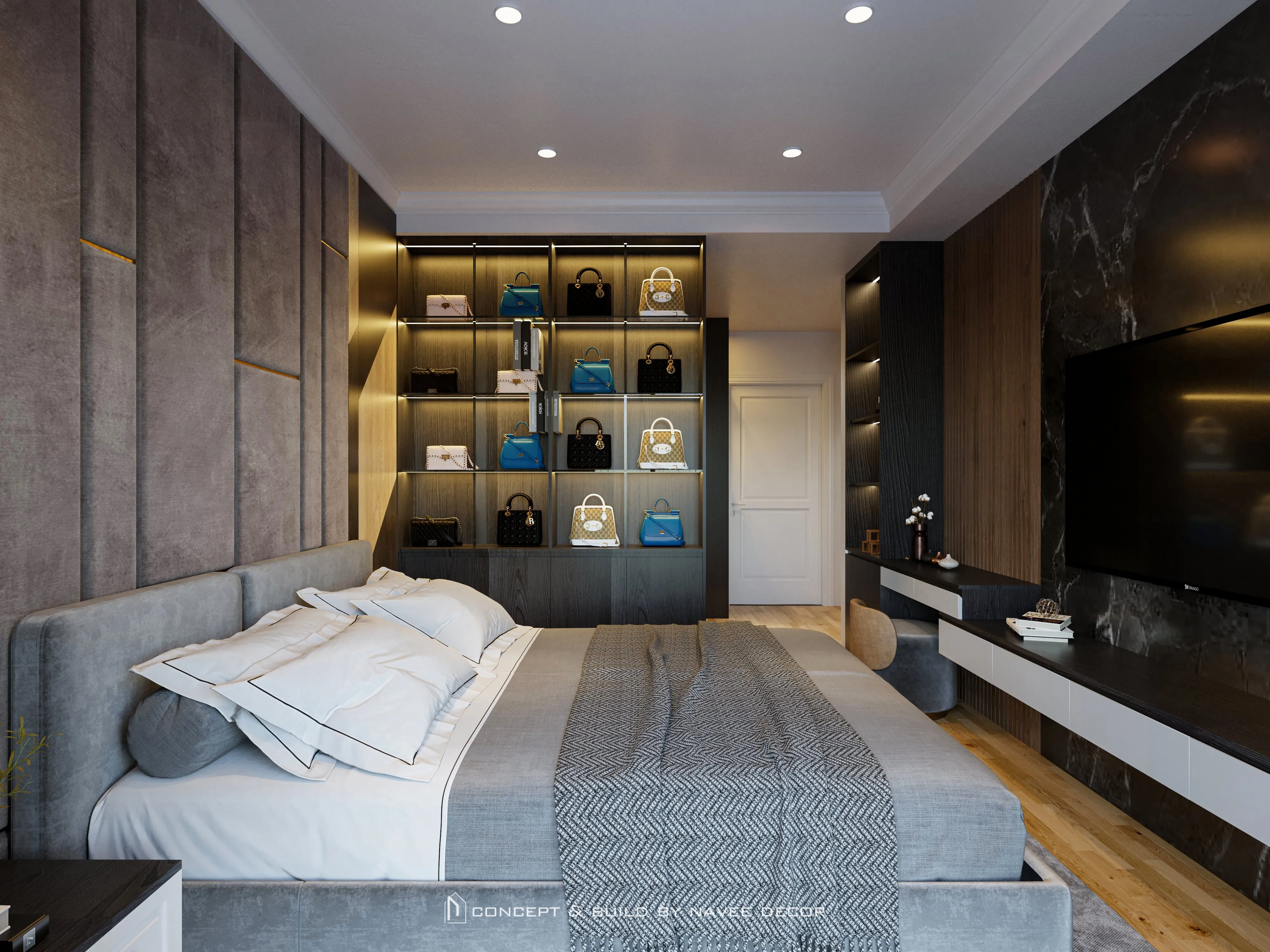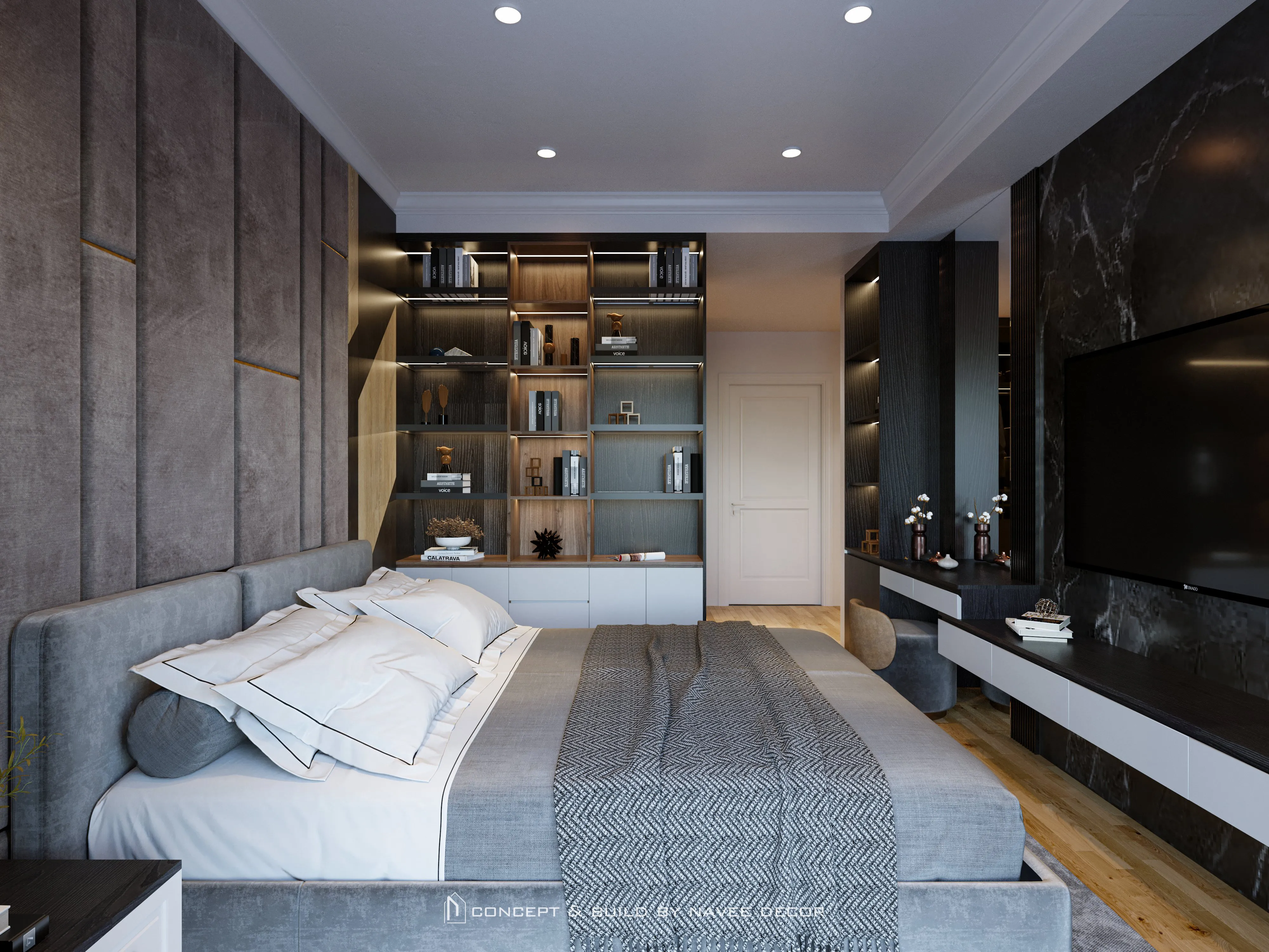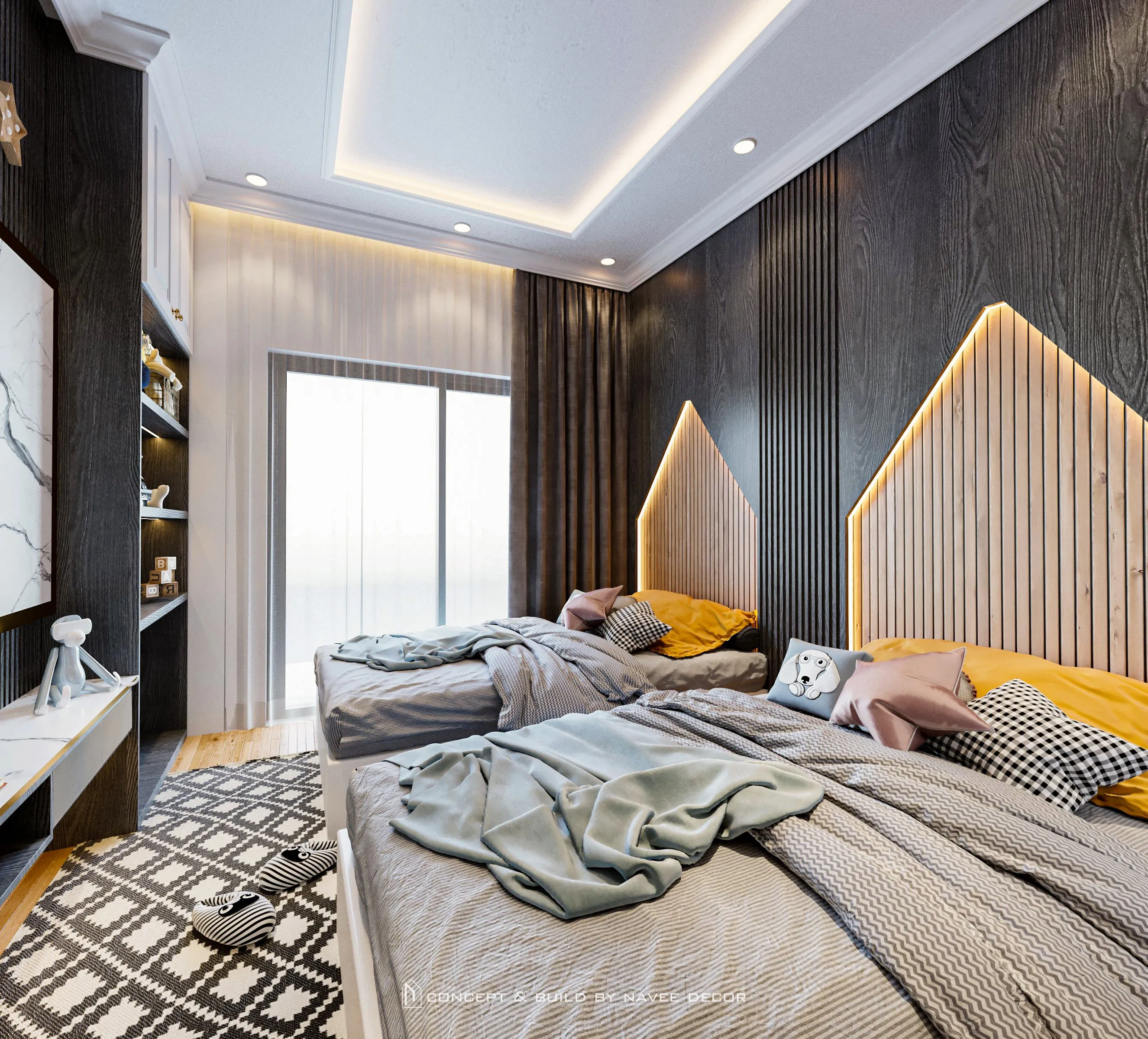 - Phòng ngủ và các không gian riêng được thiết kế theo hướng tối giản, tập trung vào trải nghiệm.