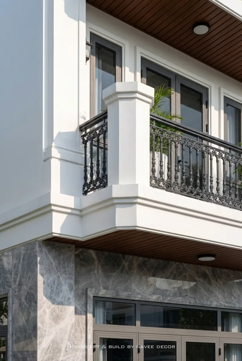 - Lan can sắt mỹ thuật tạo điểm nhấn sang trọng.