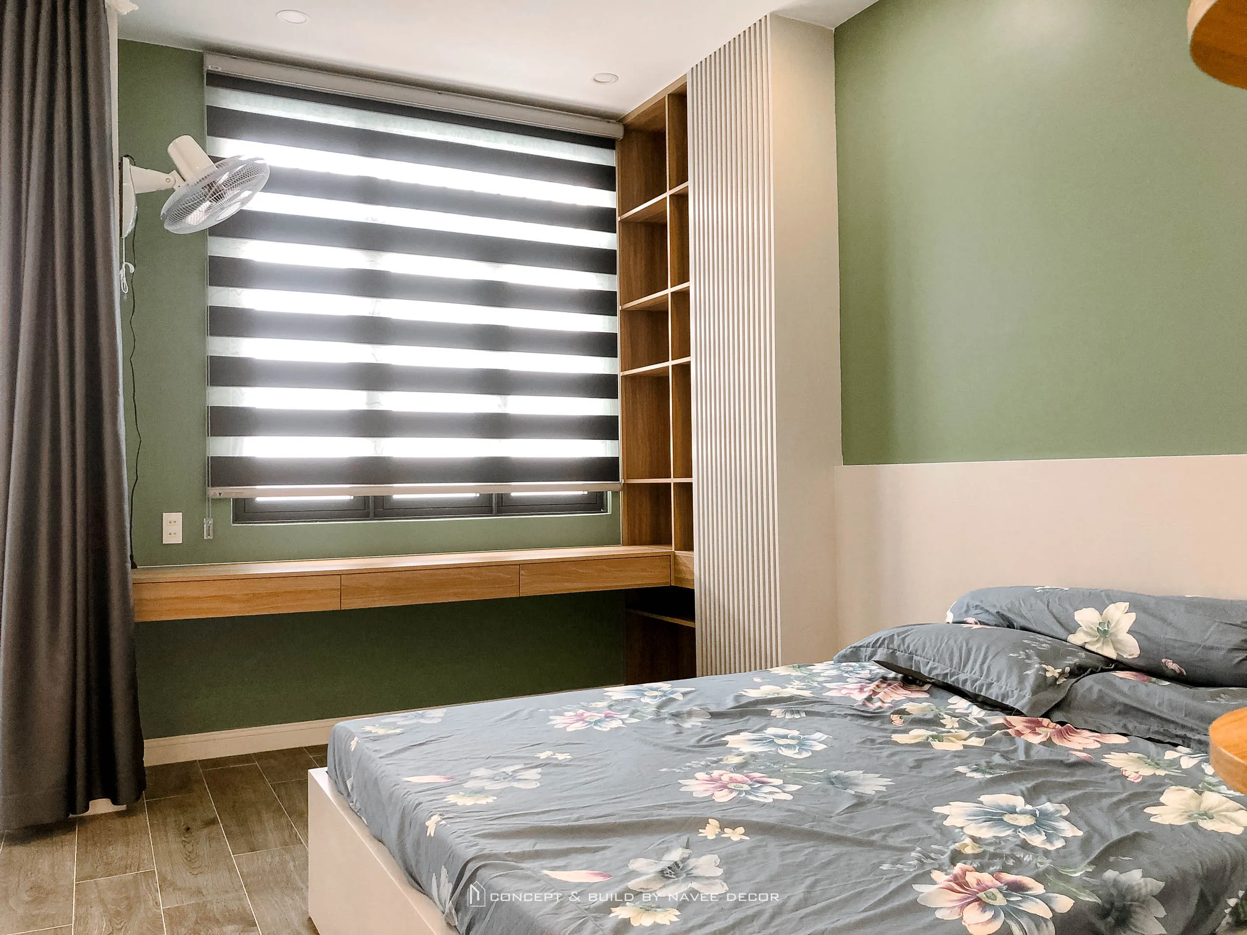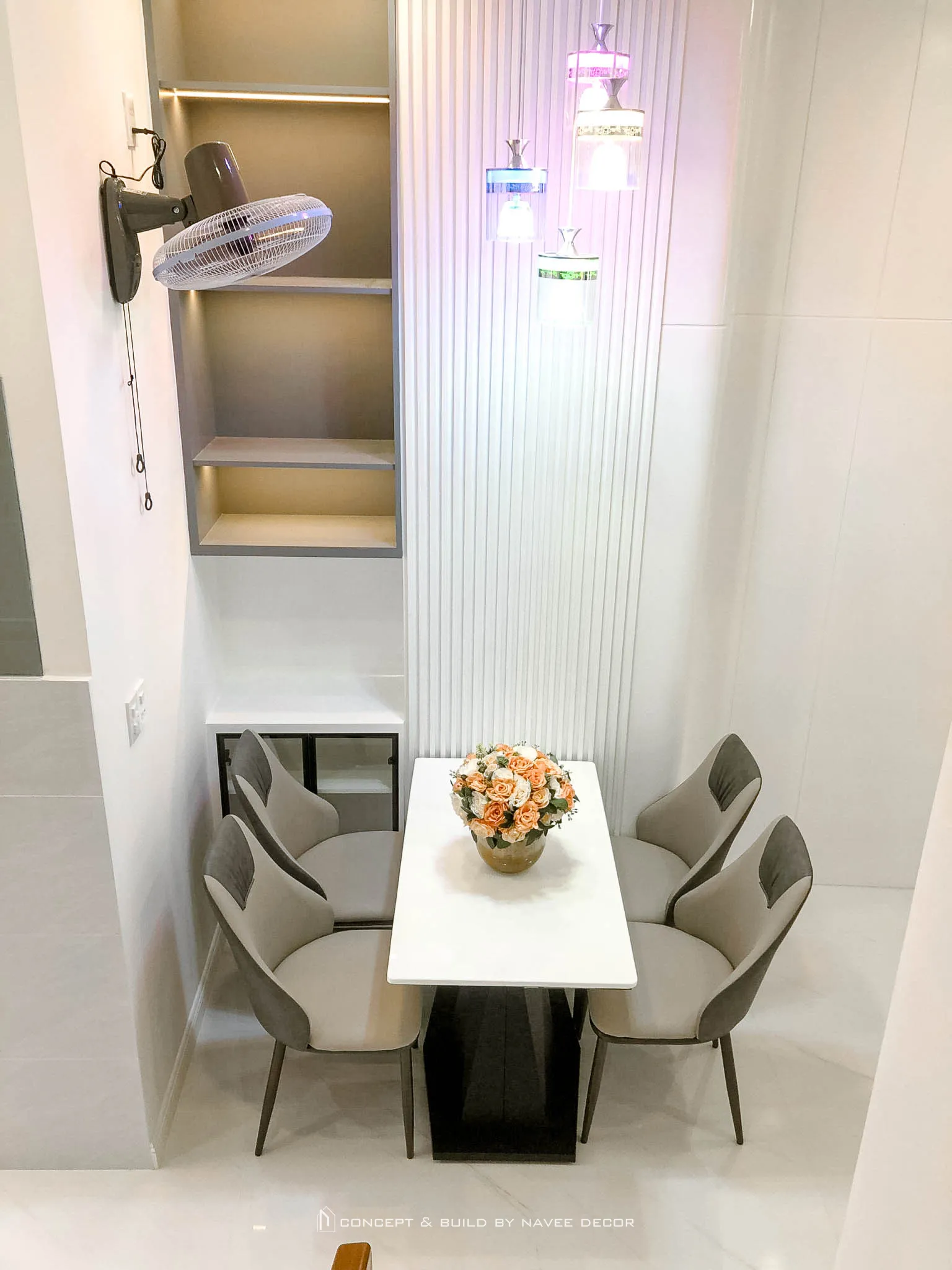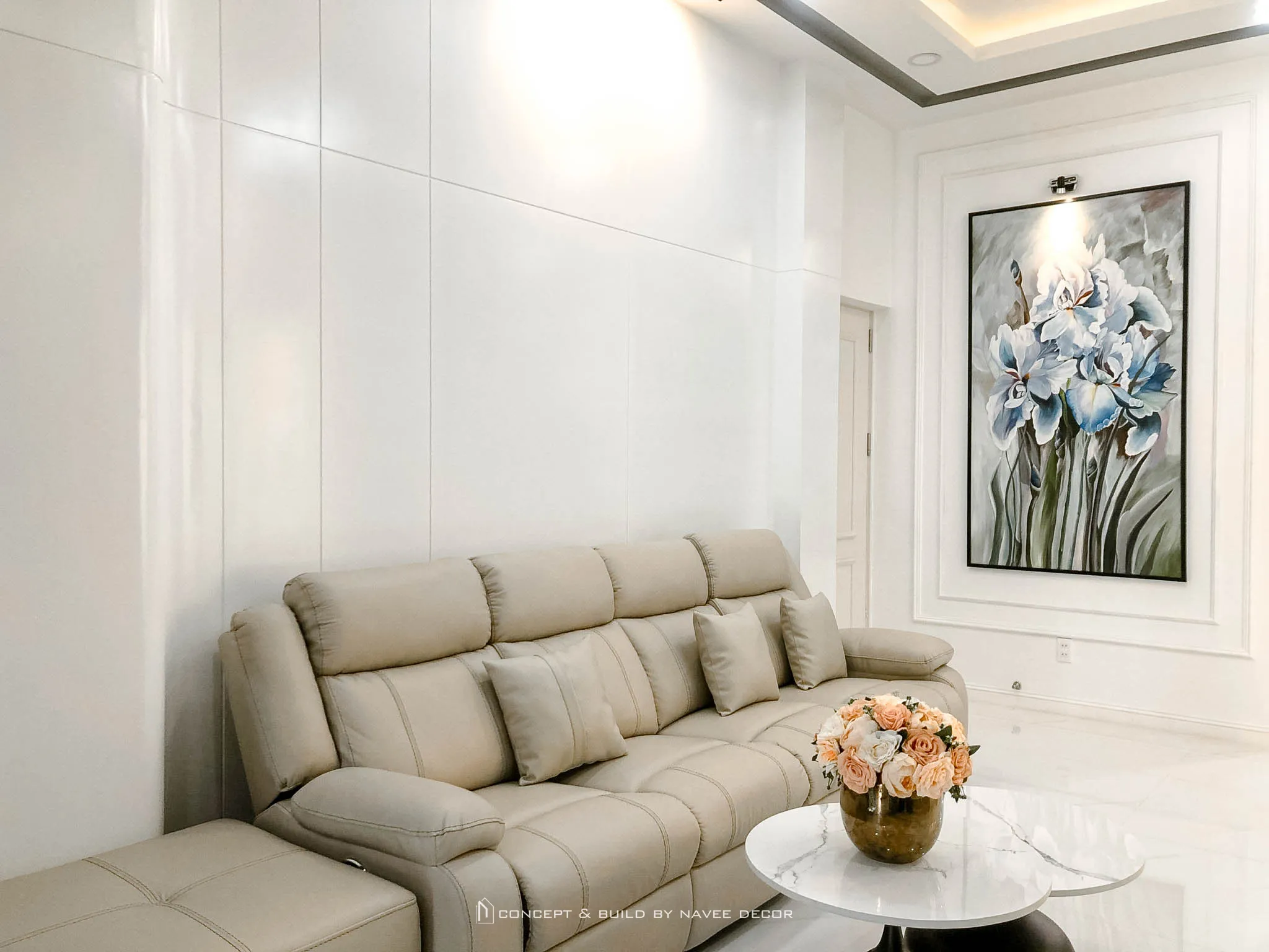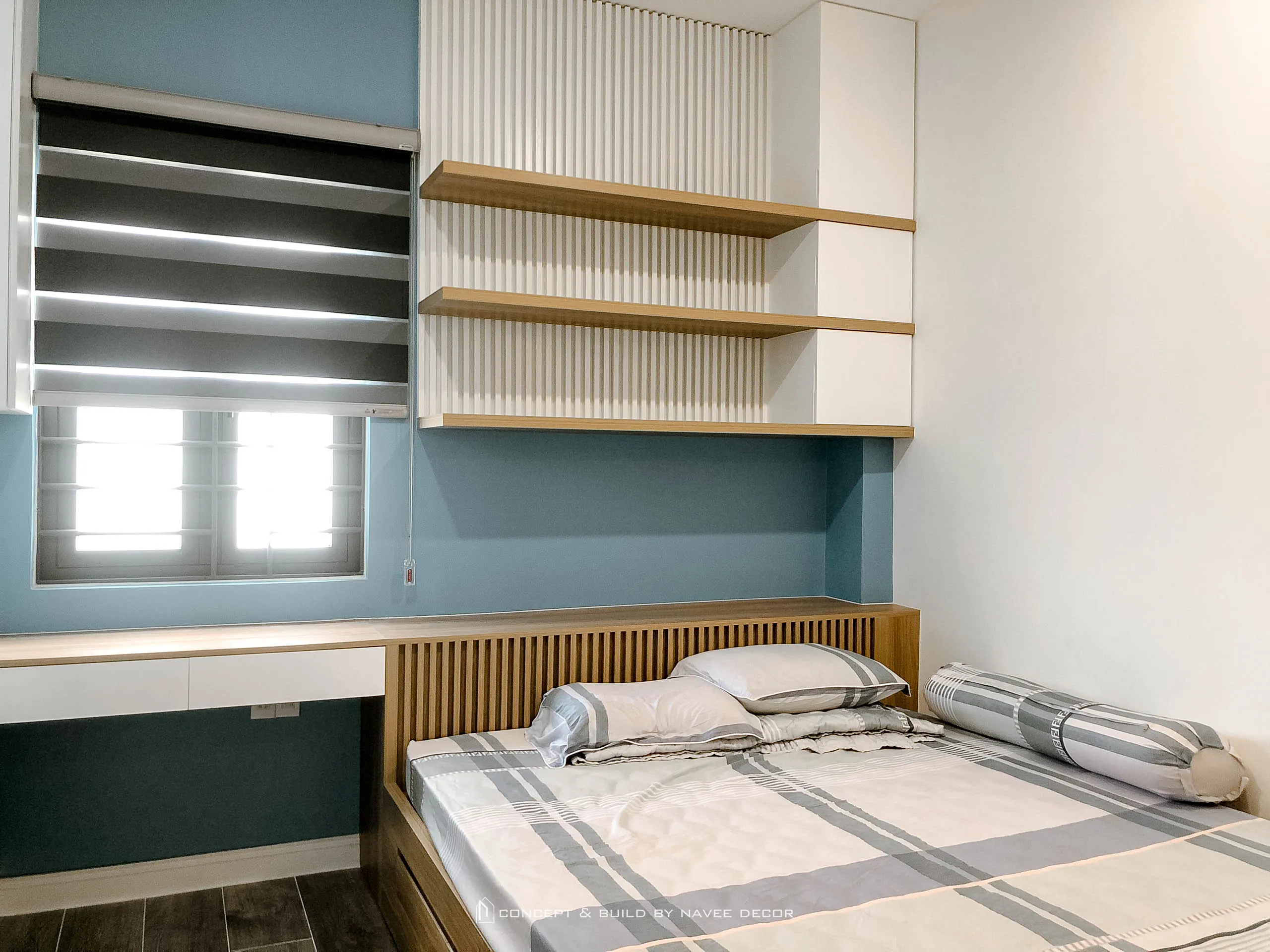 Đặc trưng của nhà phố là diện tích chiều ngang hạn chế. Vì vậy, Navee đã triển khai giải pháp không gian liên thông phòng, tối giản chi tiết nhưng vẫn đảm bảo đầy đủ công năng, sử dụng nội thất “đo ni đóng giày” theo kích thước thực tế.