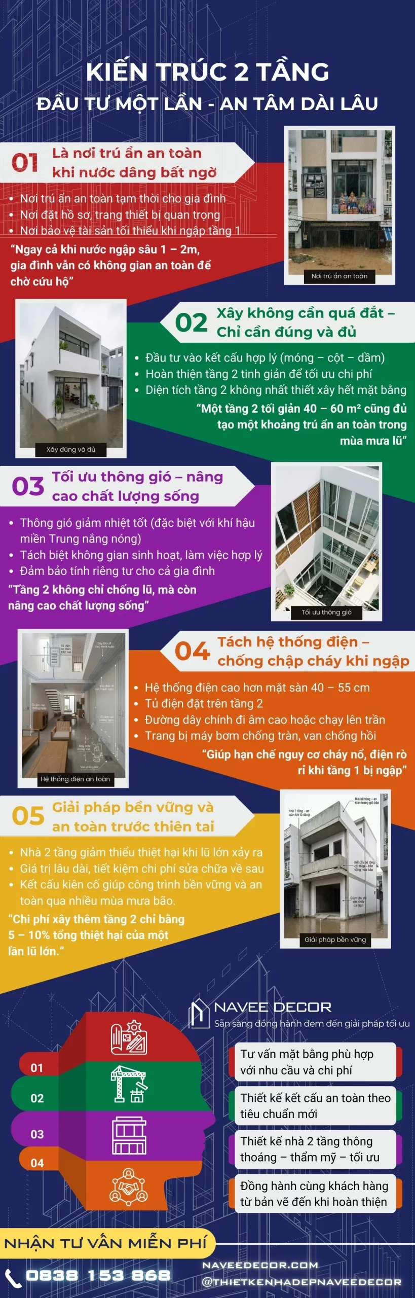 Nếu bạn đang có ý định xây nhà tại miền Trung, hãy cân nhắc thật nghiêm túc việc làm tối thiểu một tầng 2 an toàn và diện tích không cần quá lớn. Chỉ một không gian cao ráo cũng đủ để bảo vệ gia đình trong những giờ phút nước dâng bất ngờ.