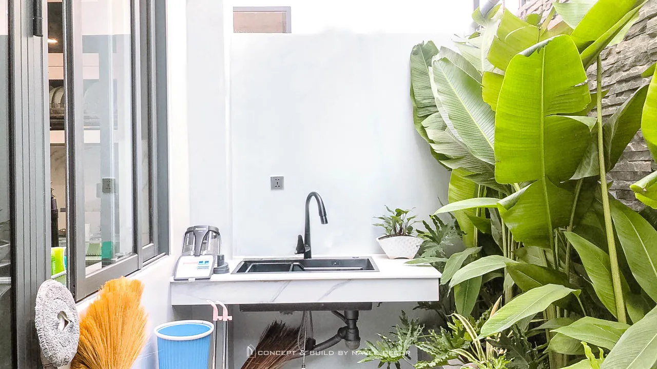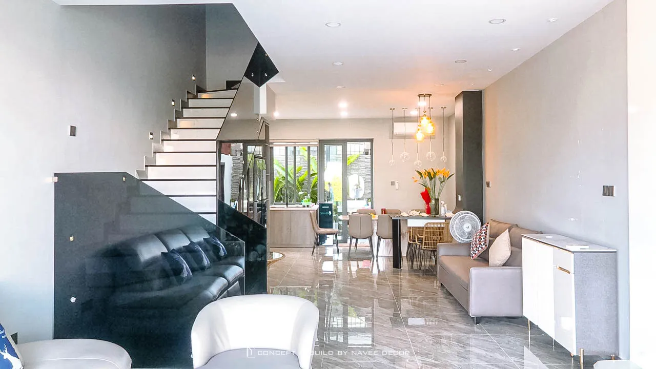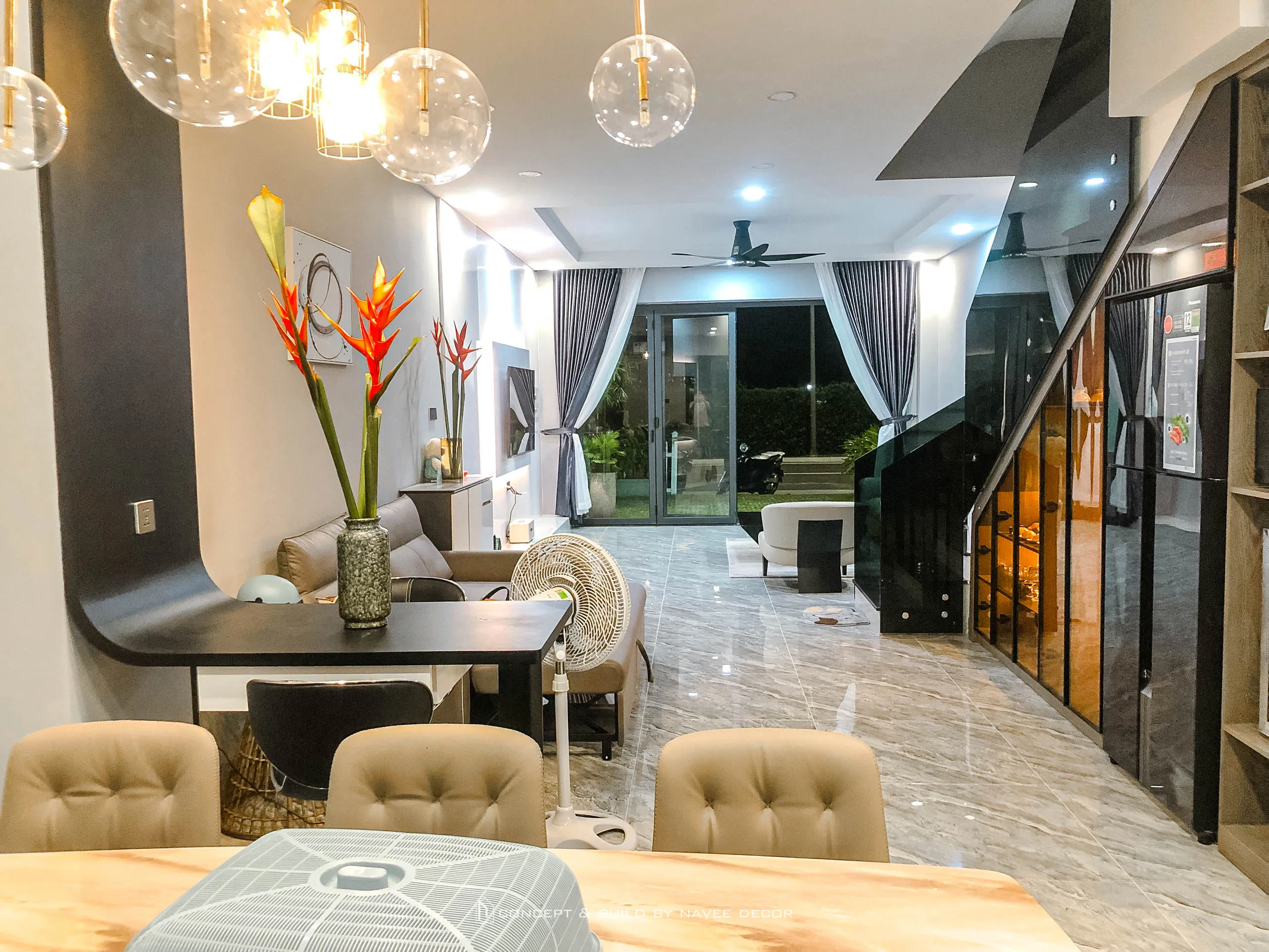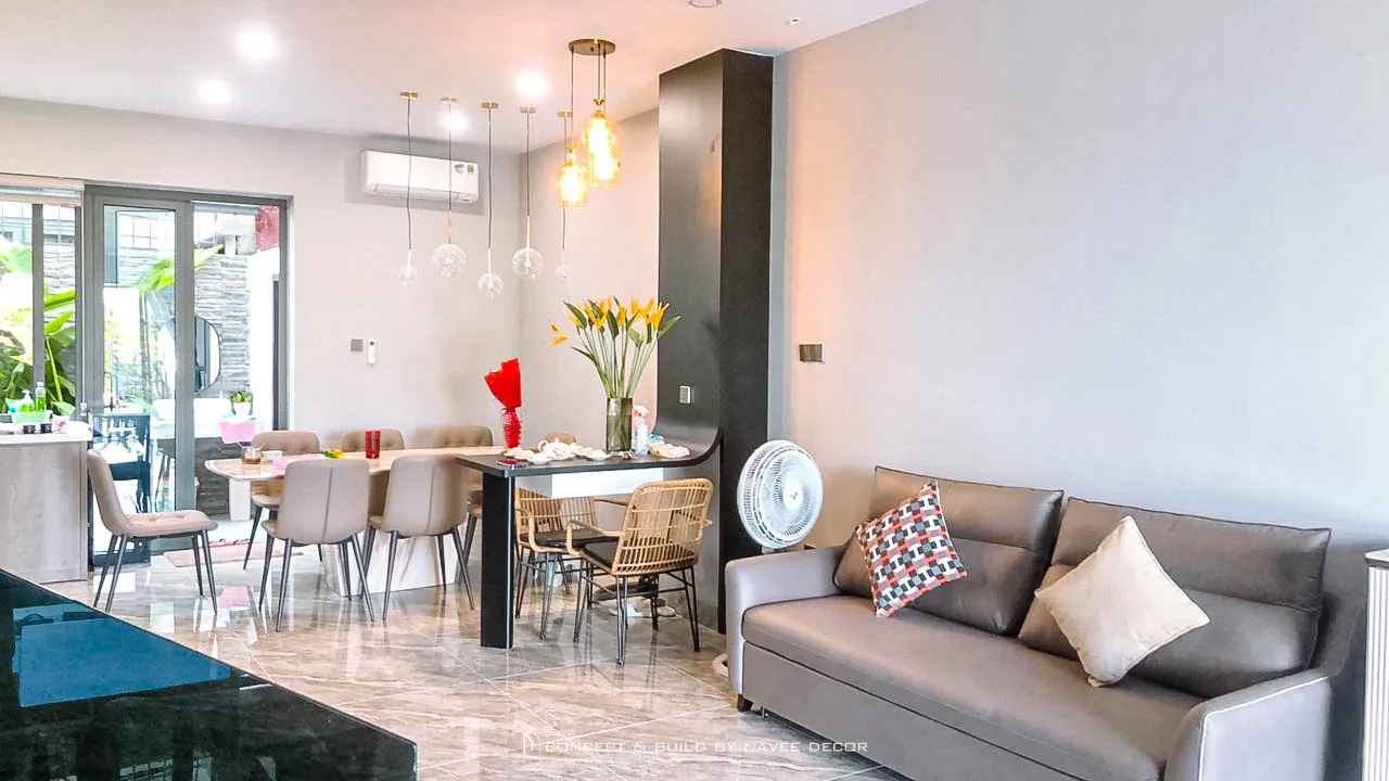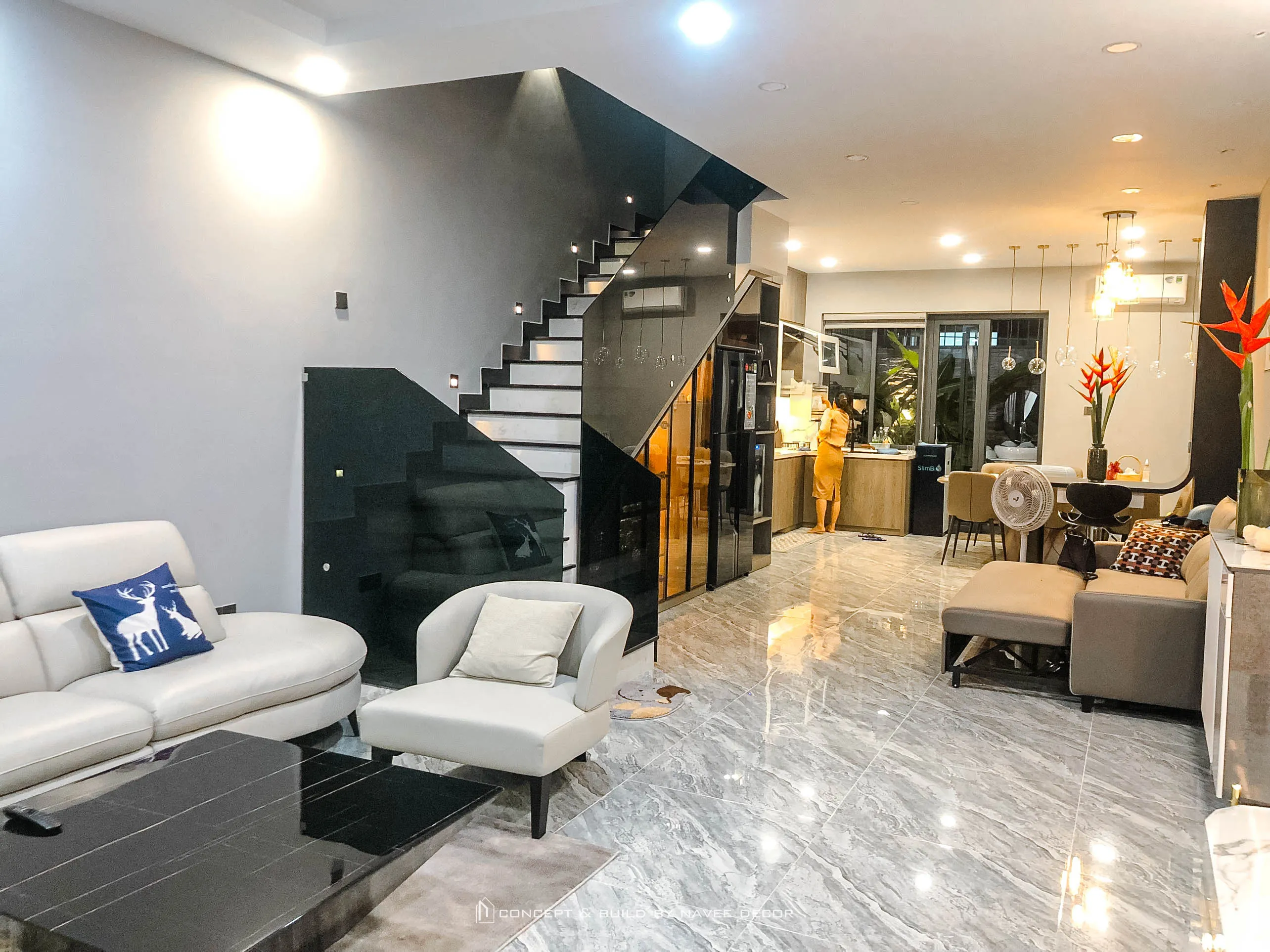 Dự án hướng đến bài toán cải tạo không gian phòng khách và bếp mang tinh thần “ở nhà như nghỉ dưỡng”, nơi ánh sáng – cây xanh – vật liệu được kết nối hài hòa. Thiết kế tối ưu đặc thù nhà phố với giải pháp mở rộng không gian theo chiều sâu, rộng rãi và thoáng đãng.