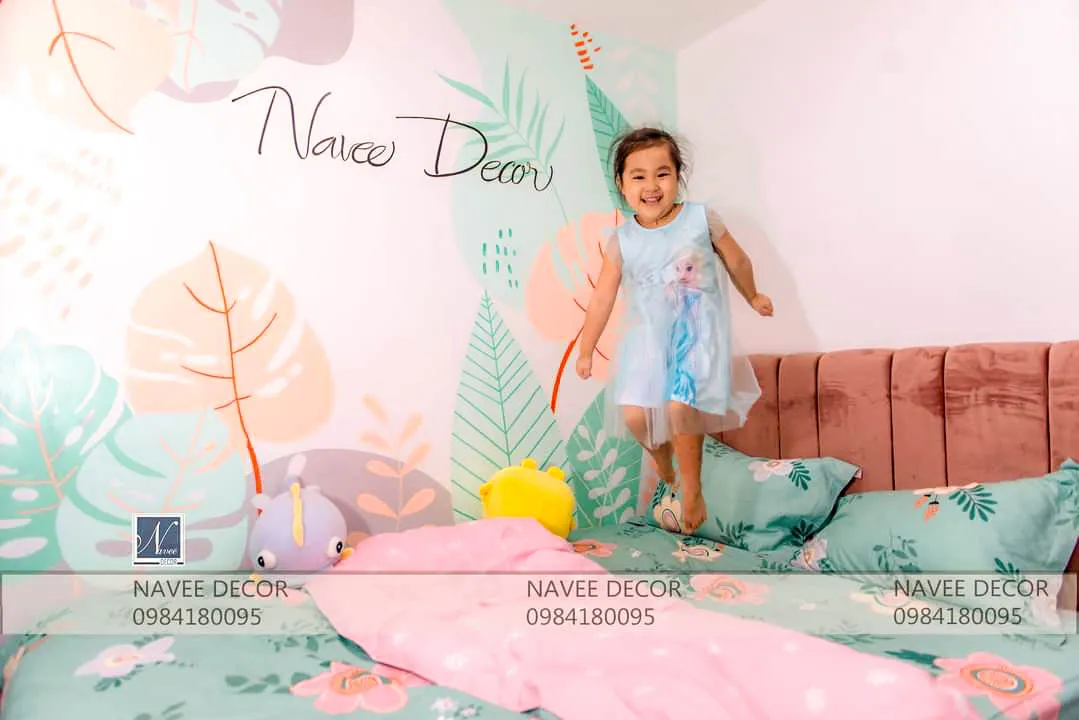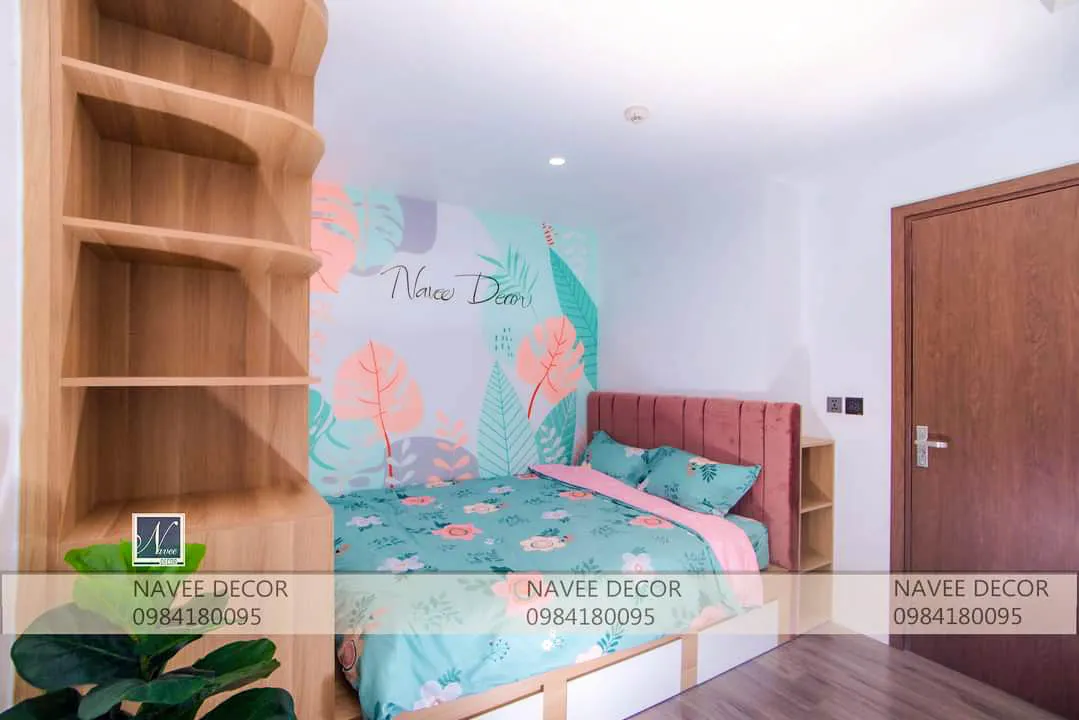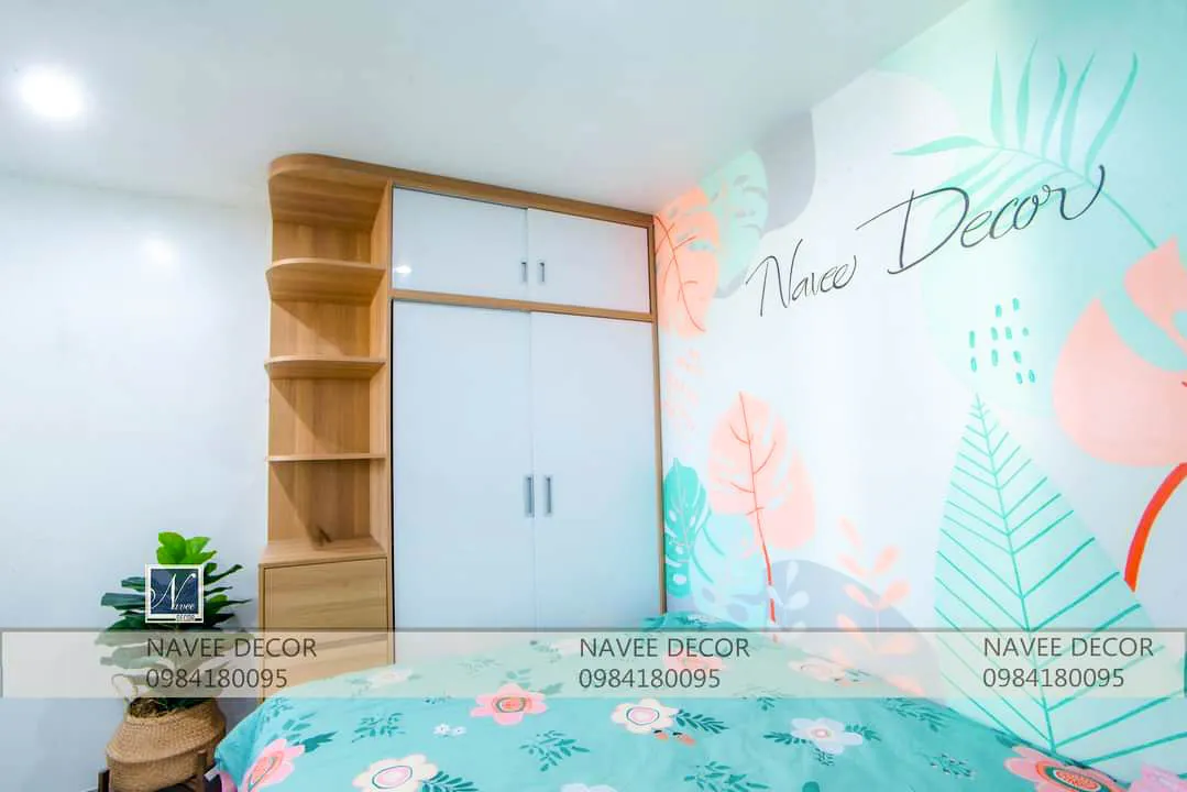 - Mảng tường màu sắc nhẹ nhàng kết hợp decor đơn giản